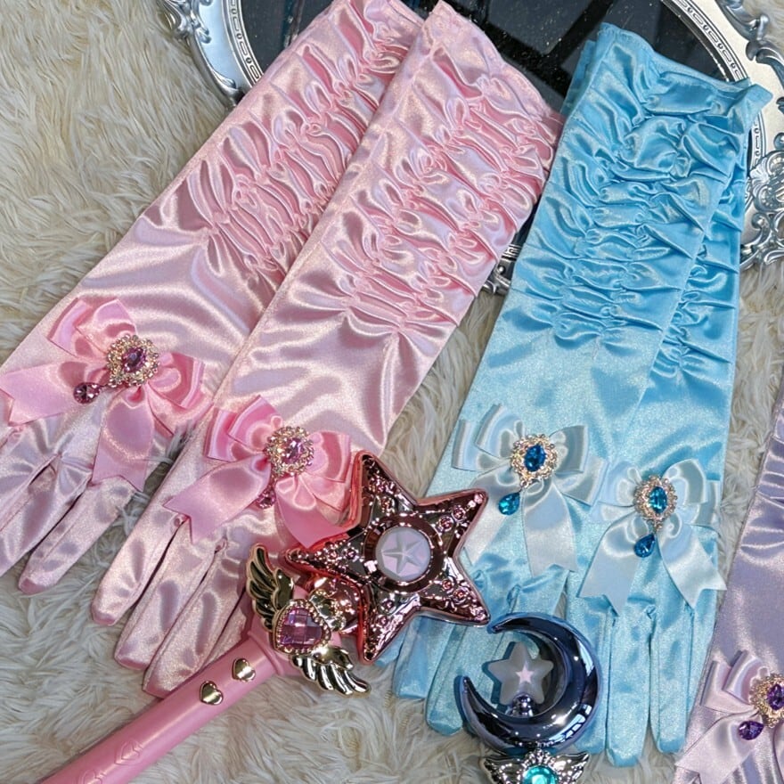 アイドル衣装 きらめきサテンのスリーブカバー フリルたっぷりロング手袋 予約商品|3月28日まで