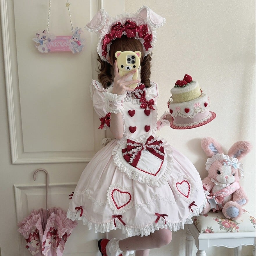 クラシカルメイド|ハートエプロンとリボンが揺れる甘ロリータメイドドレス(4色)|SEASONZ