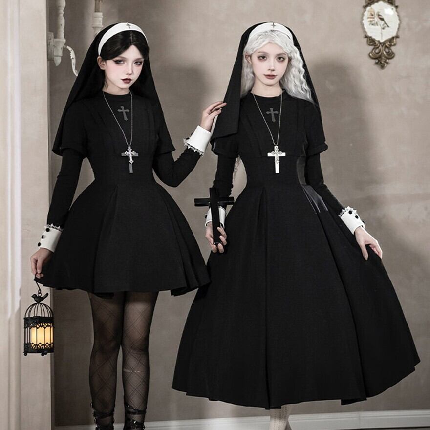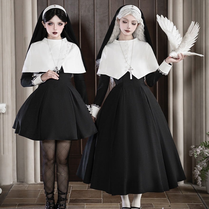 ゴシック背景や教会風セットとの相性が良く、修道女モチーフの世界観が写真映えします。