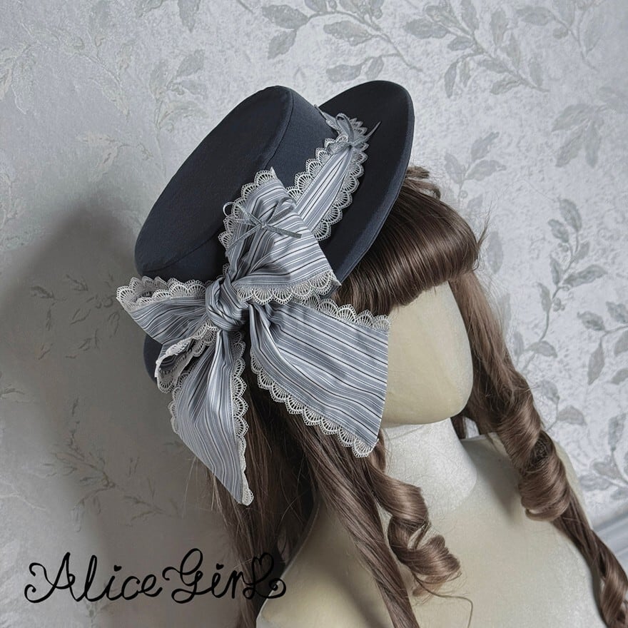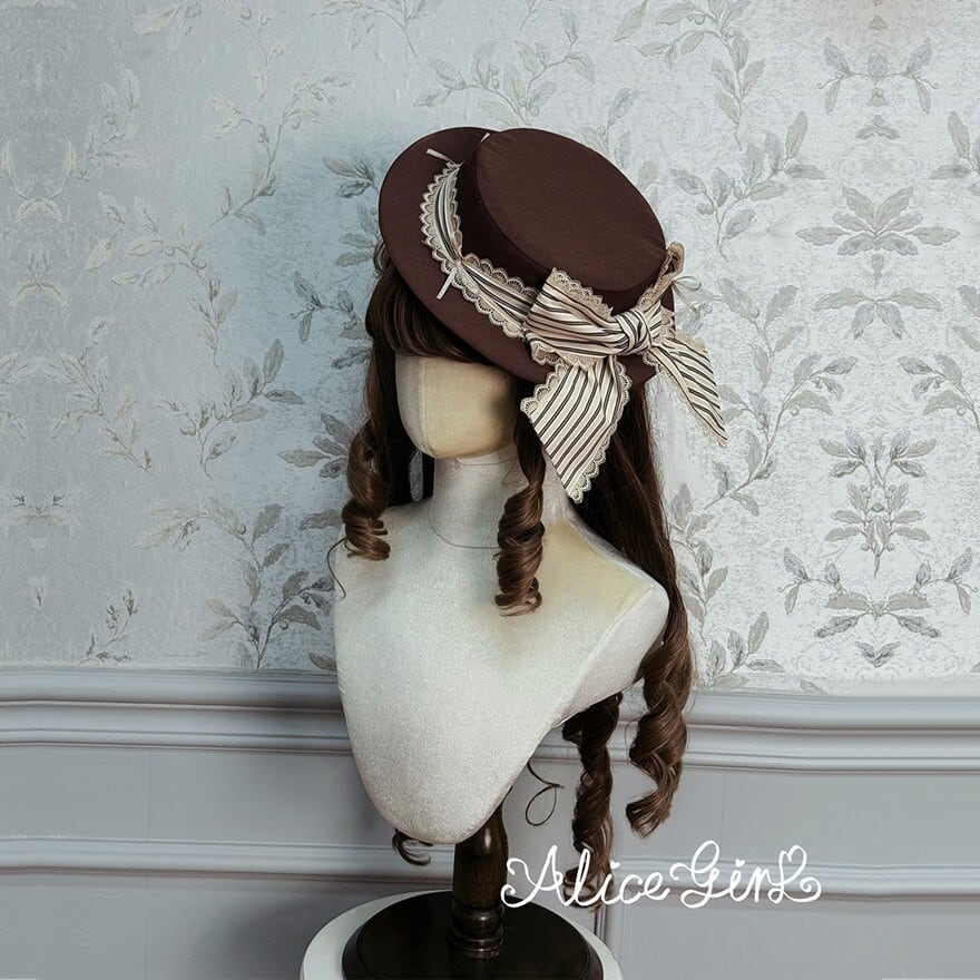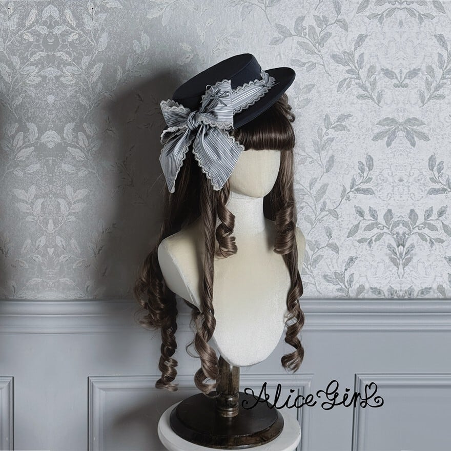 クラシカルロリータ|レースとストライプリボンが映えるヴィクトリアン調ロリータハット|SEASONZ