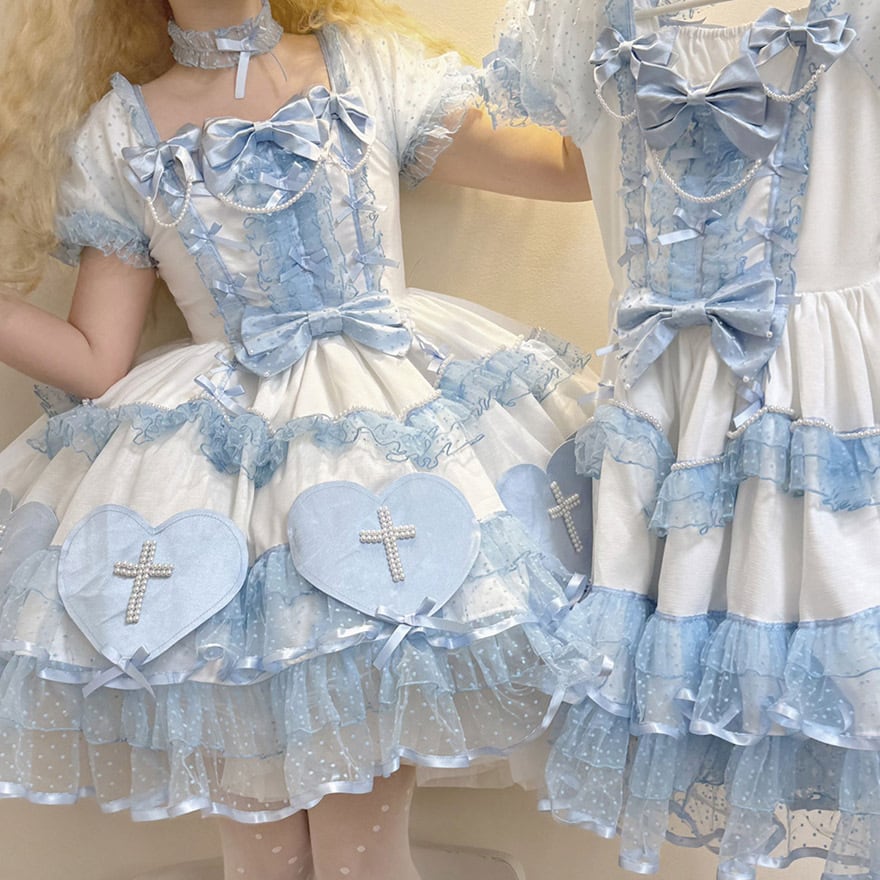 再販売 甘ロリ|背中で揺れるパールチェーンバックリボン 昭和十字恋人シリーズ 3カラー|SEASONZ