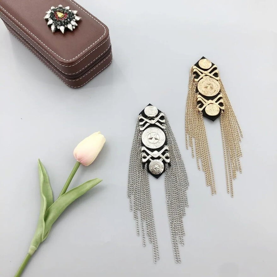 ステージ衣装・生誕祭衣装のカスタマイズに。チェーンタッセルが長く垂れ下がり、動きに合わせて表情が変わります。