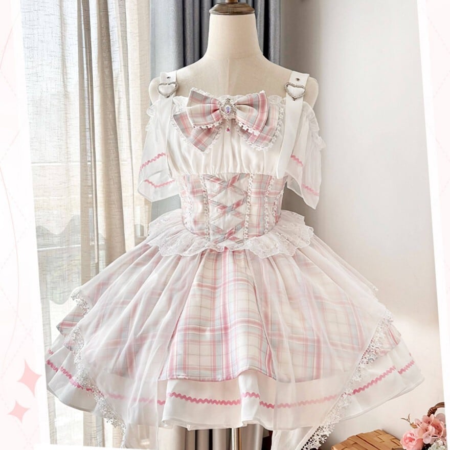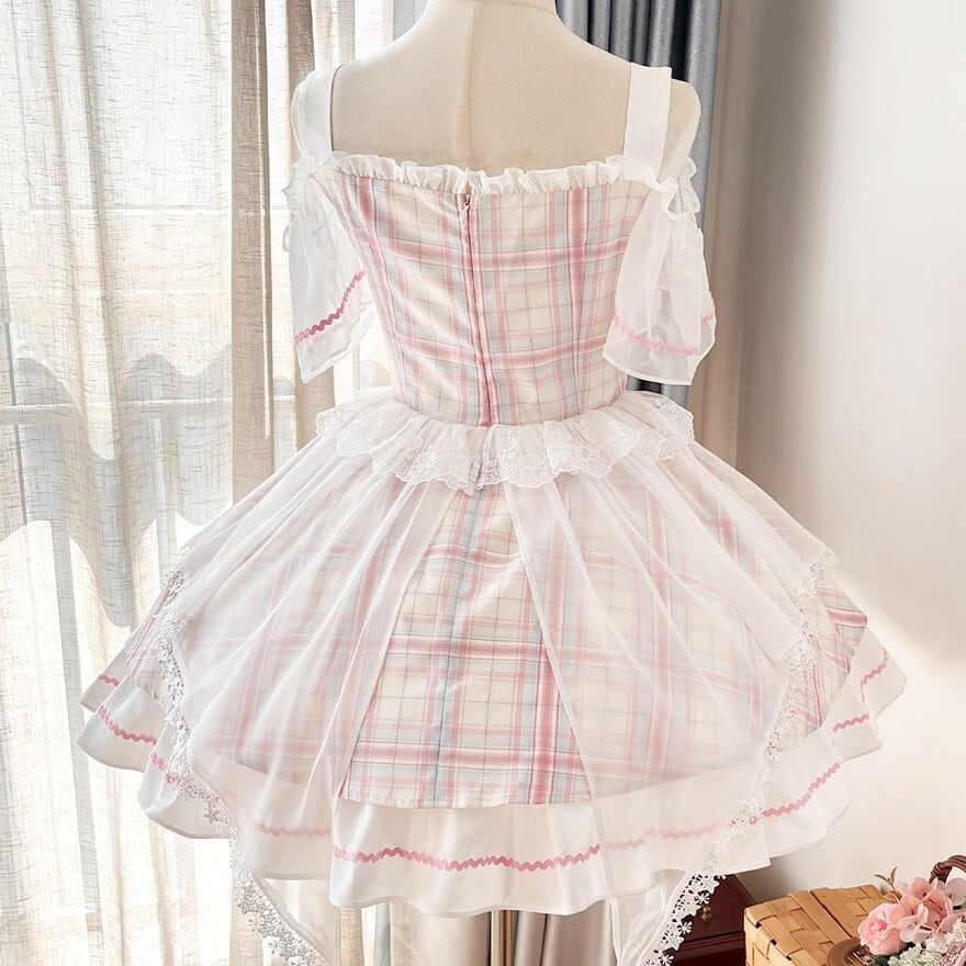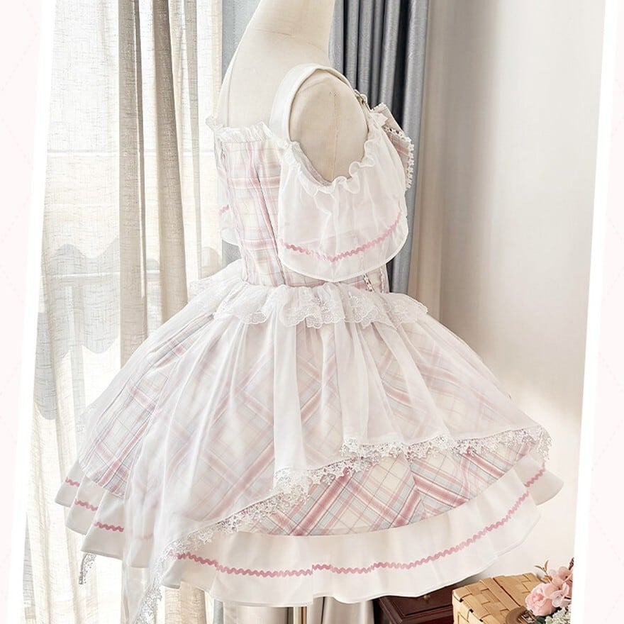 ・カラー配色:ピンクチェックを基調に、ホワイトフリルを重ねた甘く華やかな配色