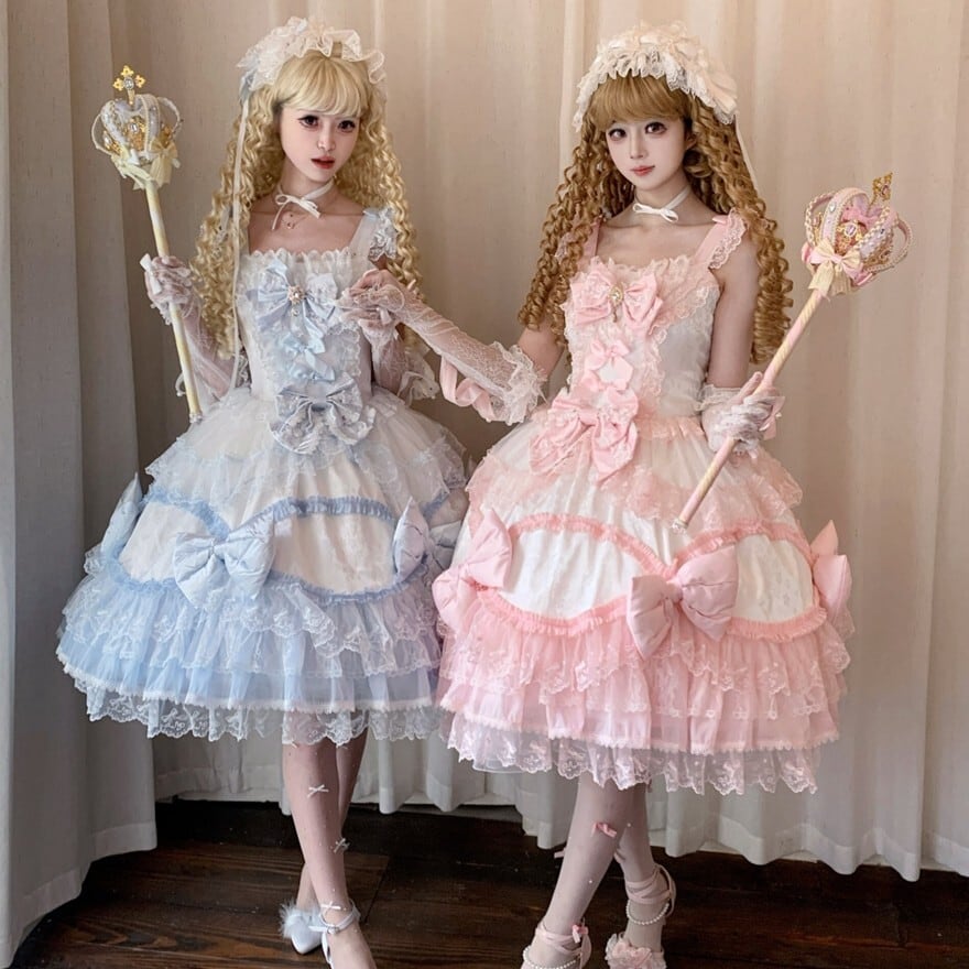 甘ロリ|ふわりと広がるレースと大きなリボンが主役のジャンパースカート 優雅な3色展開|SEASONZ
