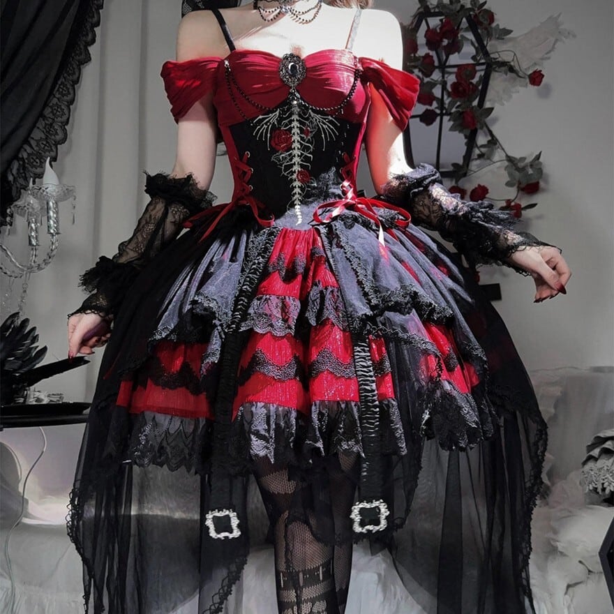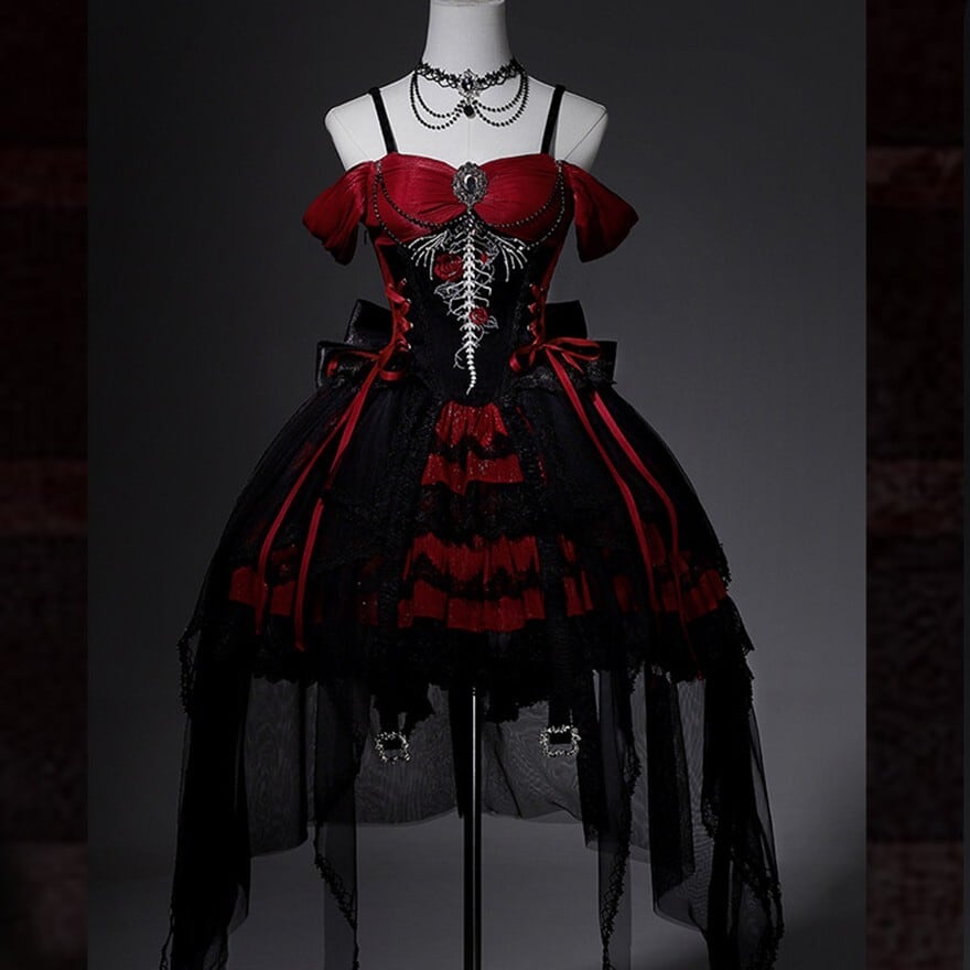 ゴシックという美学は、常に「闇の中に咲く花」を求めてきた。ヴィクトリア朝の暗部を思わせる荘厳な装飾と、黒と赤が織りなす情熱的な均衡が、着る人を夜の主役へと誘います。
