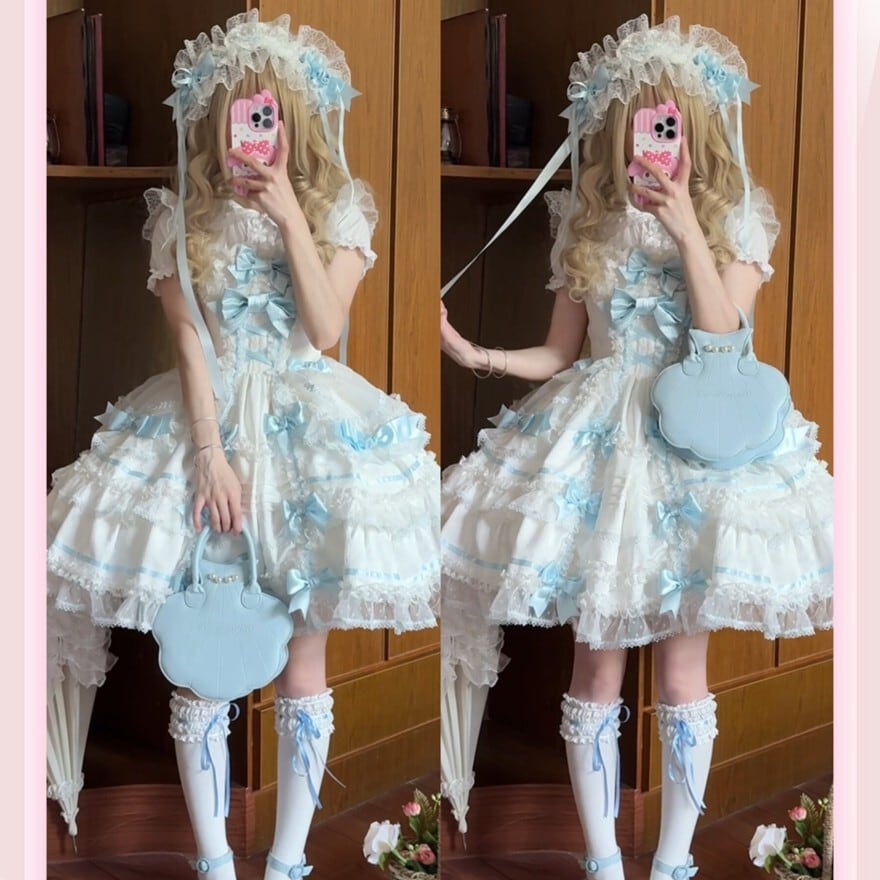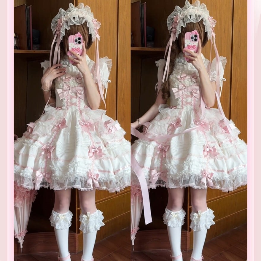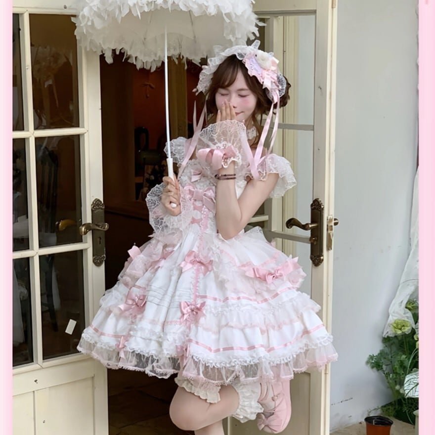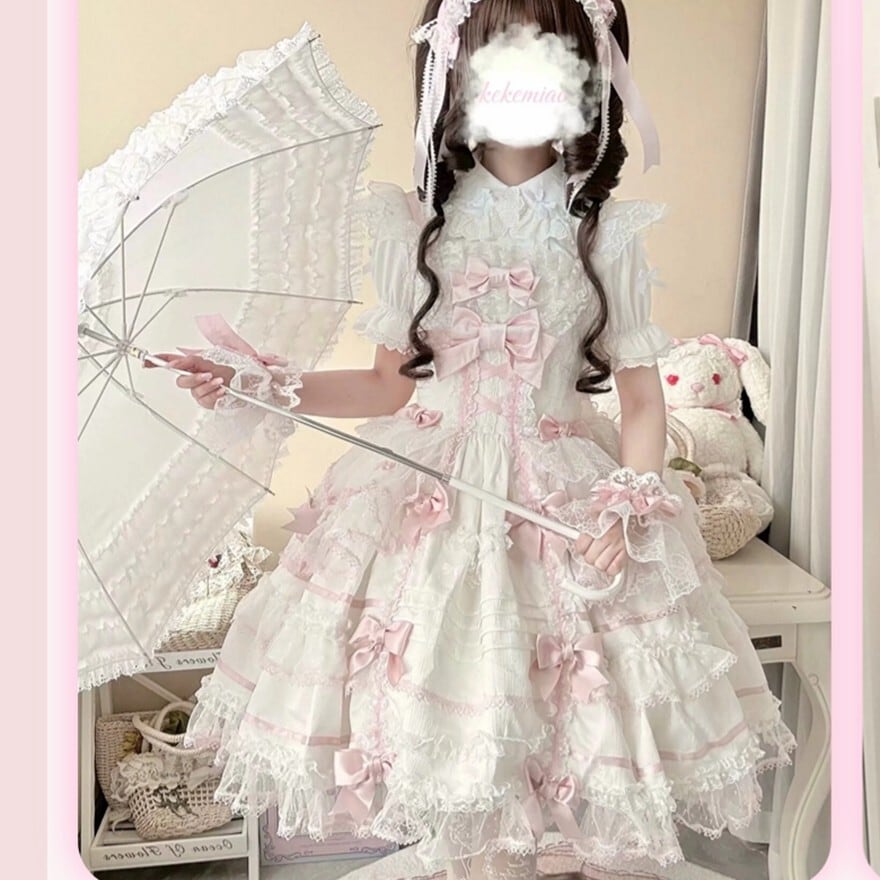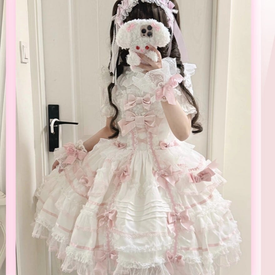 ・装飾:胸元ビッグリボン、裾多段フリル、レーストリミング