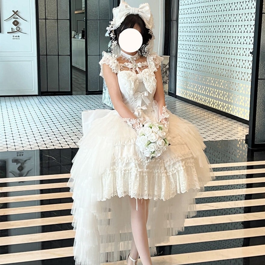 ・装飾:バックリボン、フロントボタン、パフスリーブ