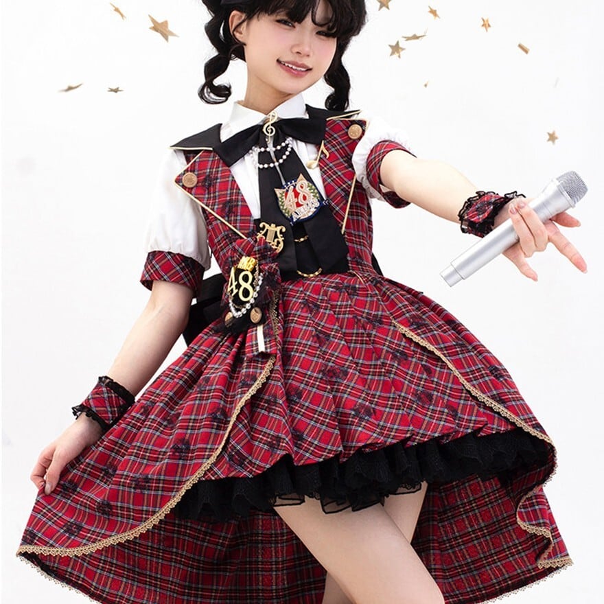 キラキラアイドル衣装 |主役級の輝きを放つ赤×黒チェック柄ステージセットアップ|SEASONZ
