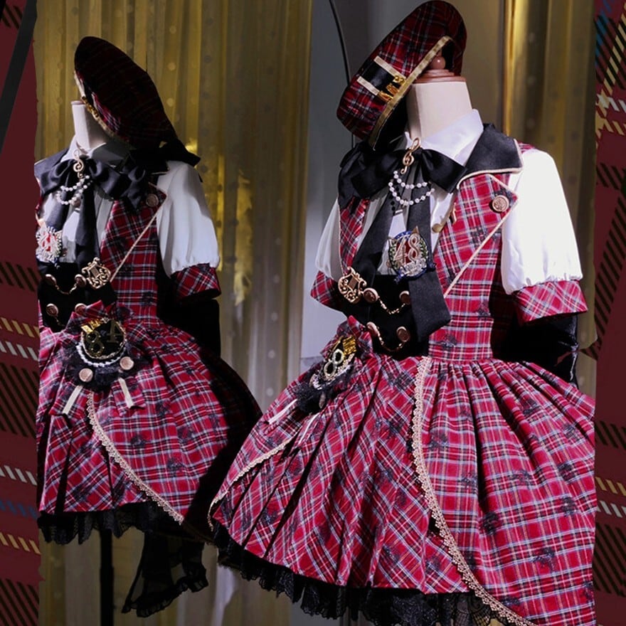 ・アイドルのライブステージや生誕祭の主役衣装として。赤×黒の王道配色は遠くの客席からも視線を集めます。