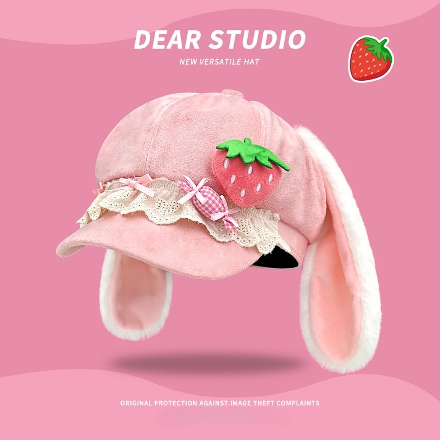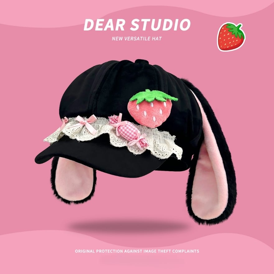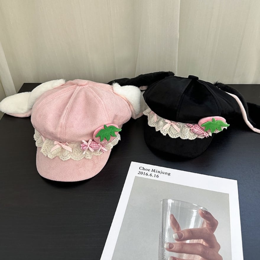 サブカル系ファッション|うさ耳と苺モチーフが揺れる レースフリルキャップ 甘さを足す主役帽子|SEASONZ