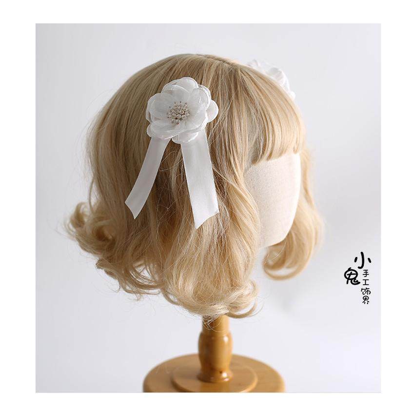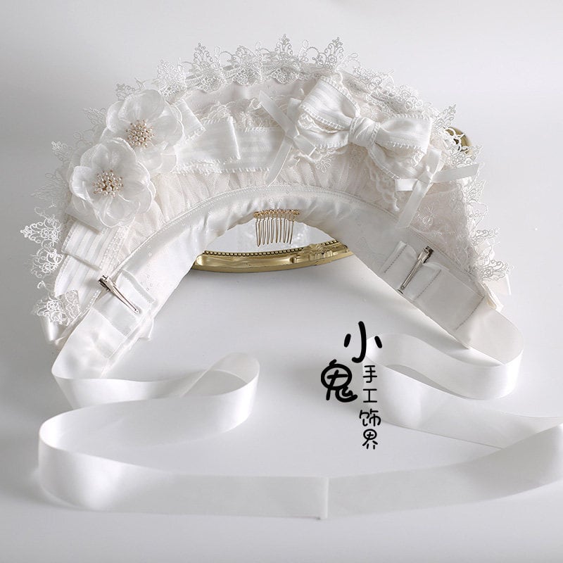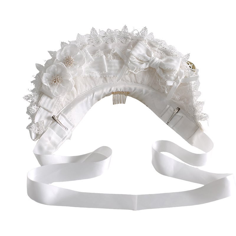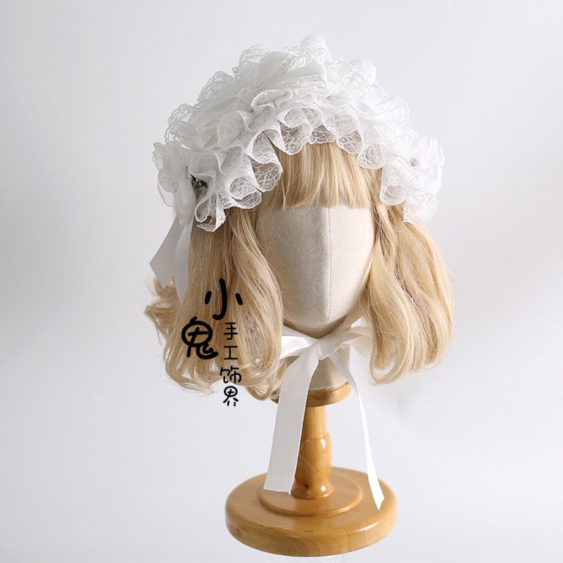 ロリィタ|白花とリボンがやさしく揺れる レースフリルボンネット 気品を纏う髪飾り|SEASONZ