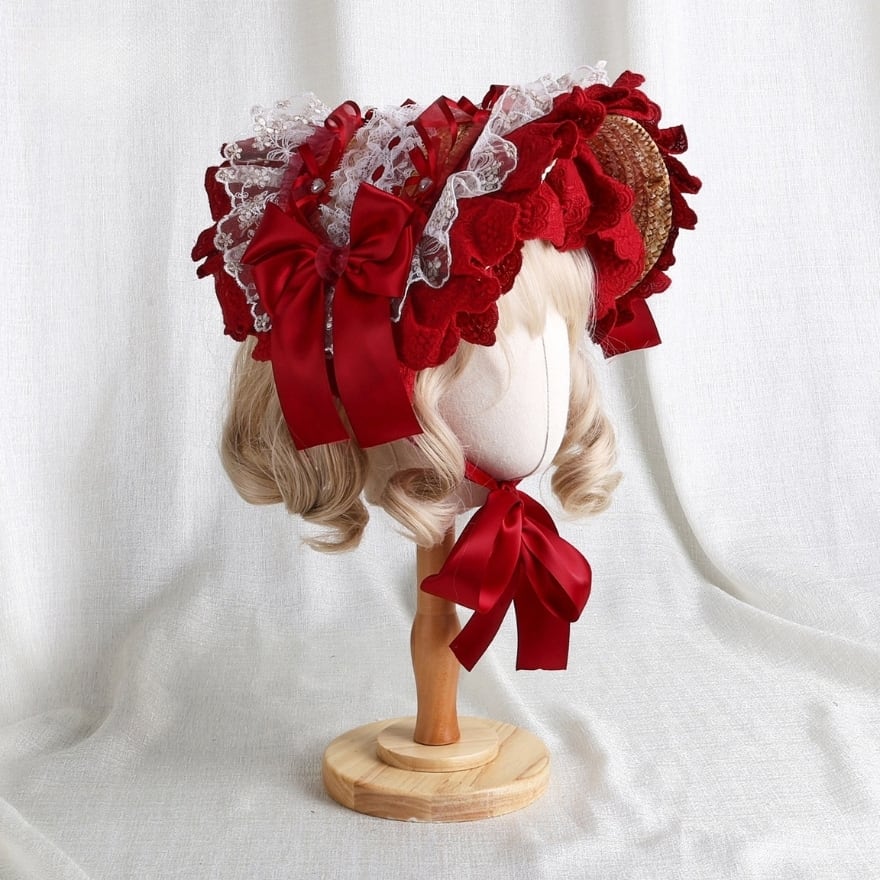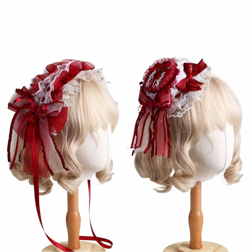 甘ロリ|王冠と赤薔薇が印象を奪う レース小帽子 気品と華やぎを纏う髪飾り|SEASONZ