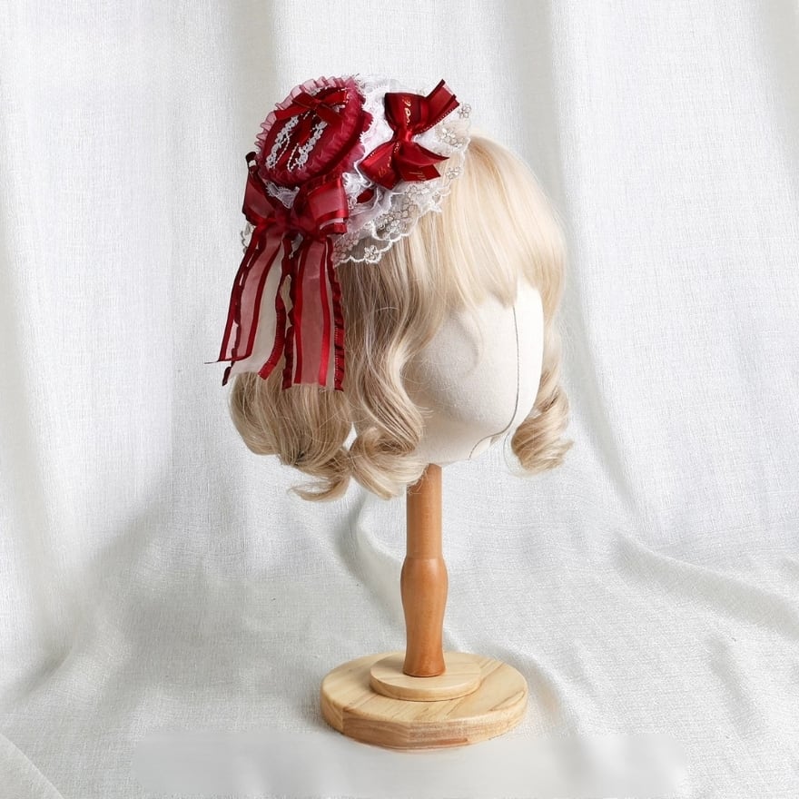 ロリィタの魅力は、可愛らしさをただ並べるのではなく、細部にまで物語を宿せるところにあると思います。白レースの軽やかさに赤い蝶結びを差し込むことで、可憐さの中に少しだけ胸が高鳴る華やぎが生まれます。お茶会や撮影会の日を、いつもより印象深く見せてくれるヘアドレスです。