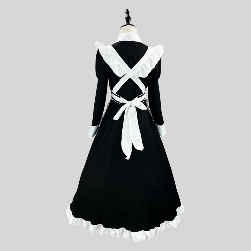 ・コンカフェ制服として。ロング丈の落ち着いた印象で、クラシカルな世界観を重視する店舗に適しています。