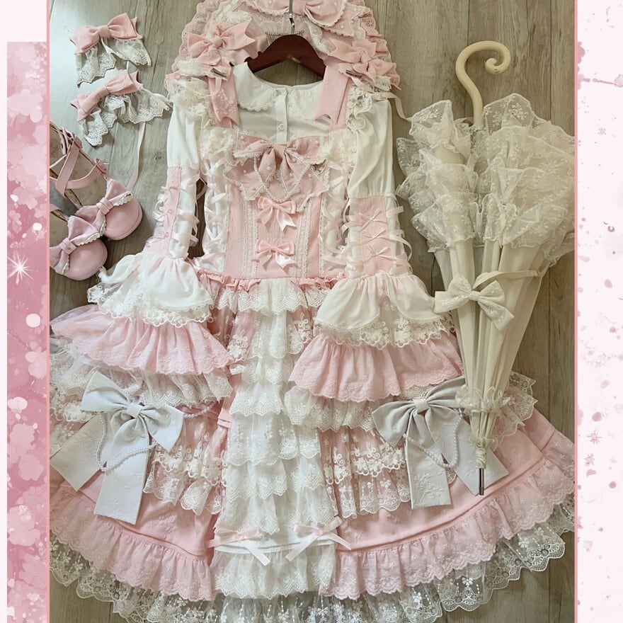・装飾:フリルとレースを多層に重ねた甘ロリらしいディテール