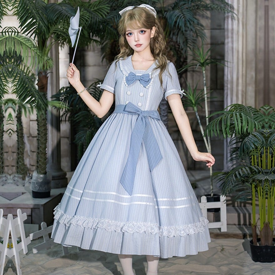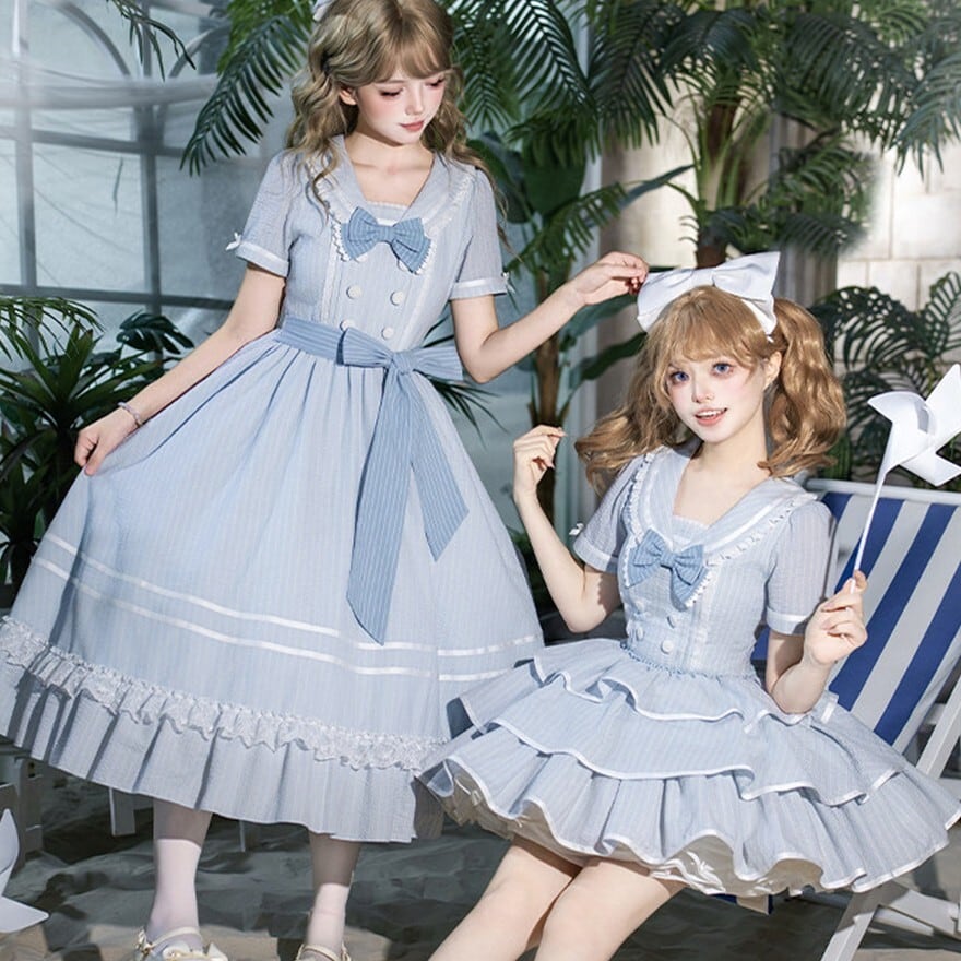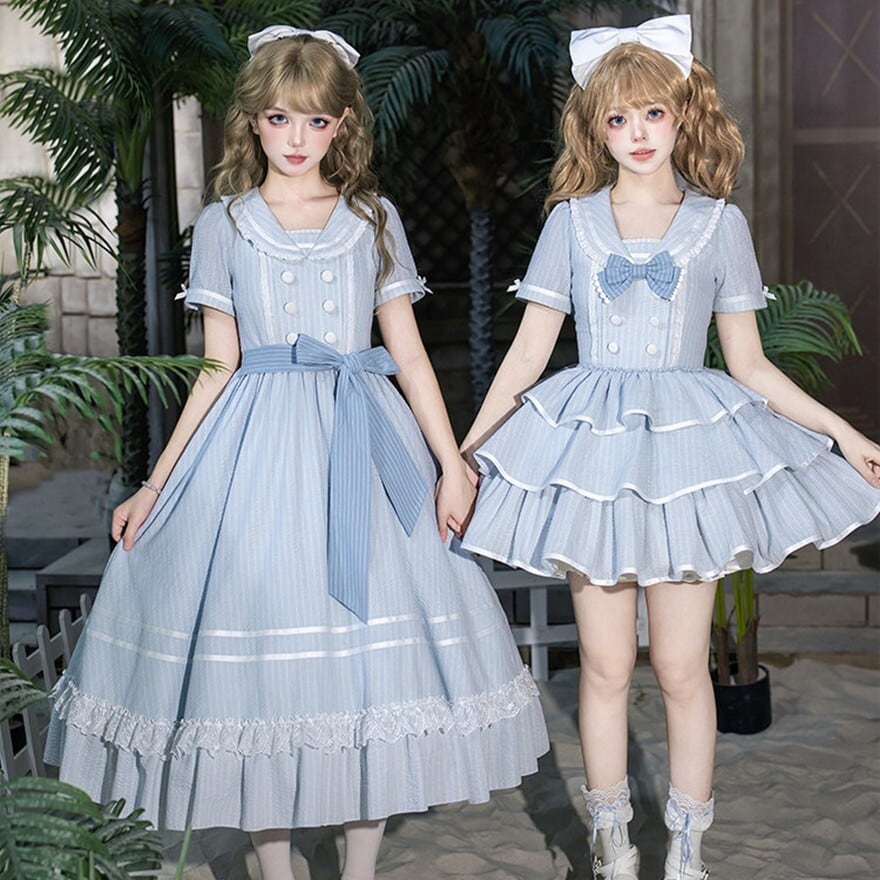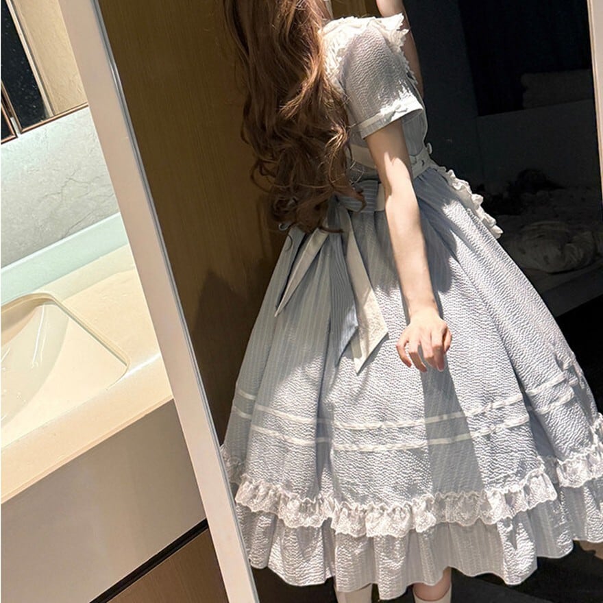 ・装飾:胸元リボン、フロントボタン、裾フリルディテール