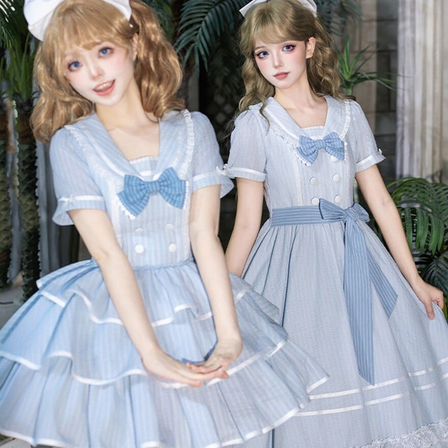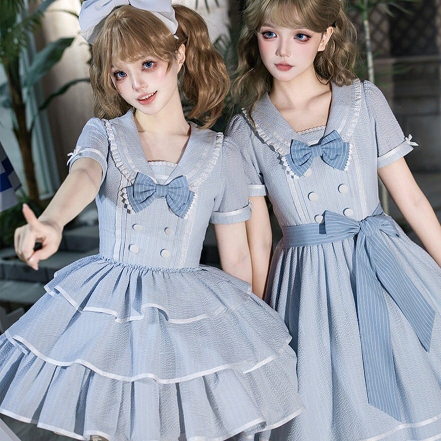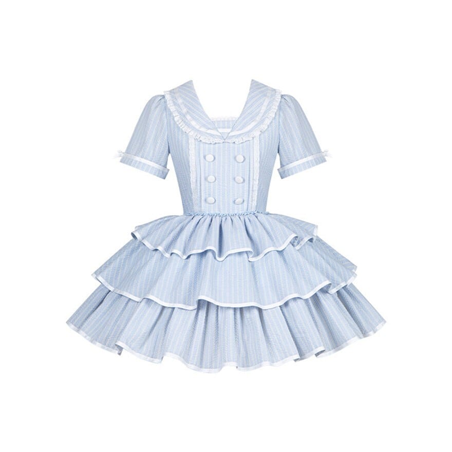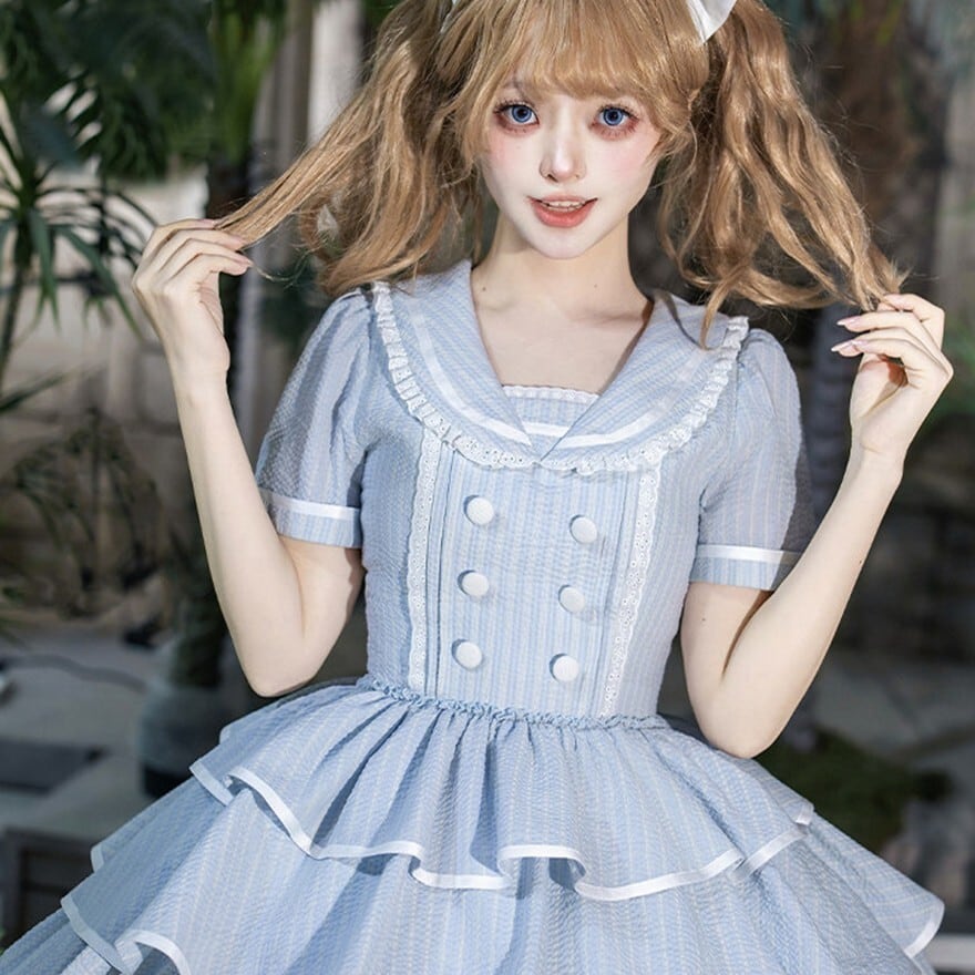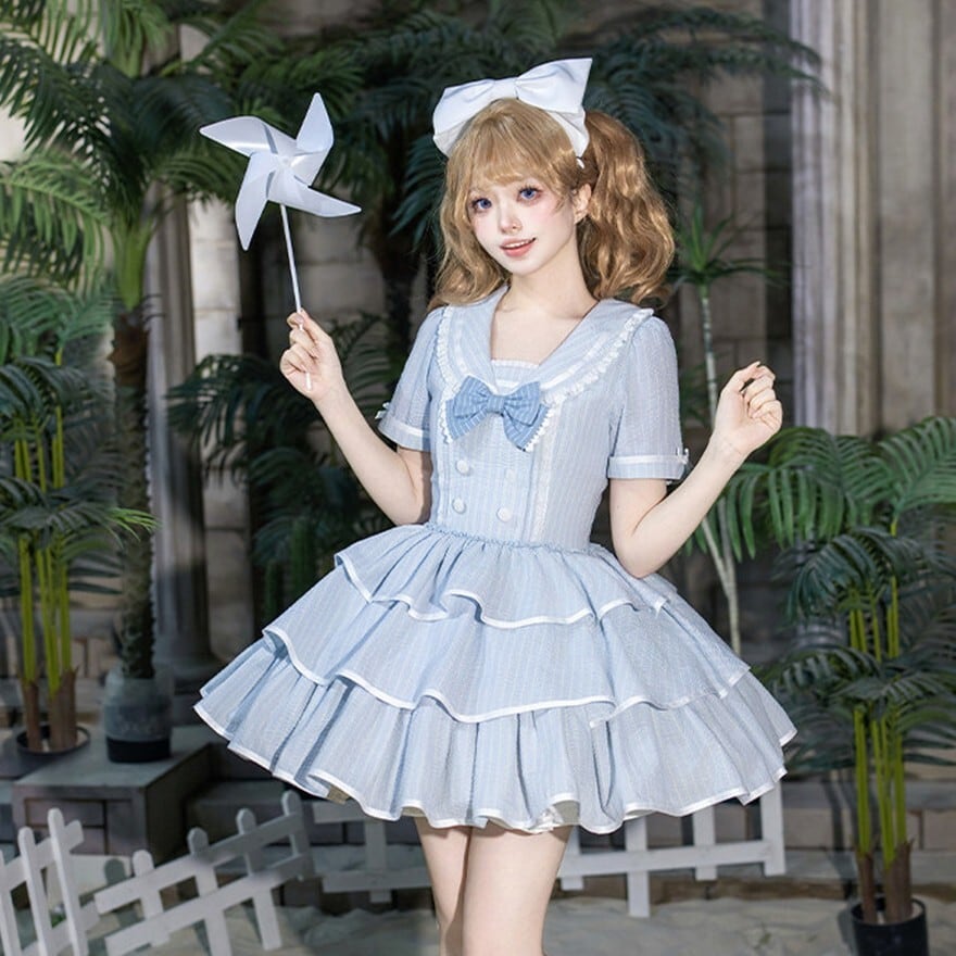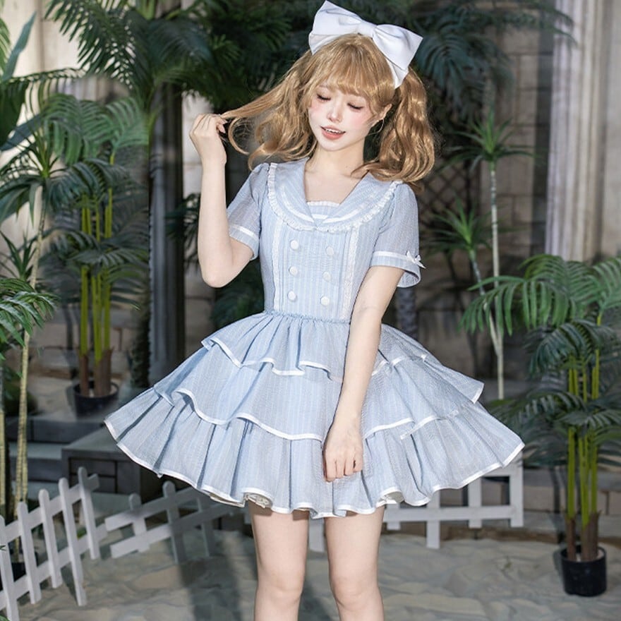 ・装飾:胸元リボン フロントボタン 段重ねフリルスカート