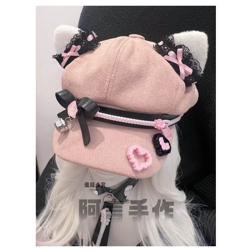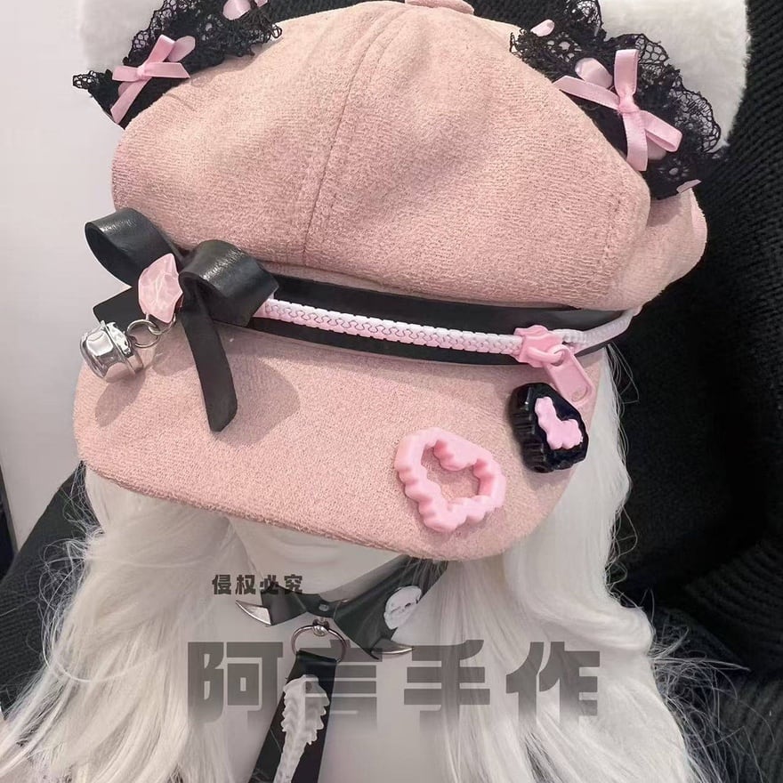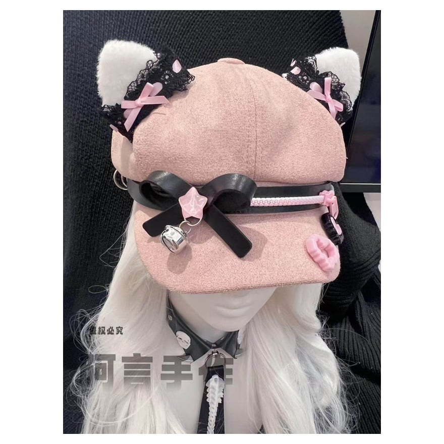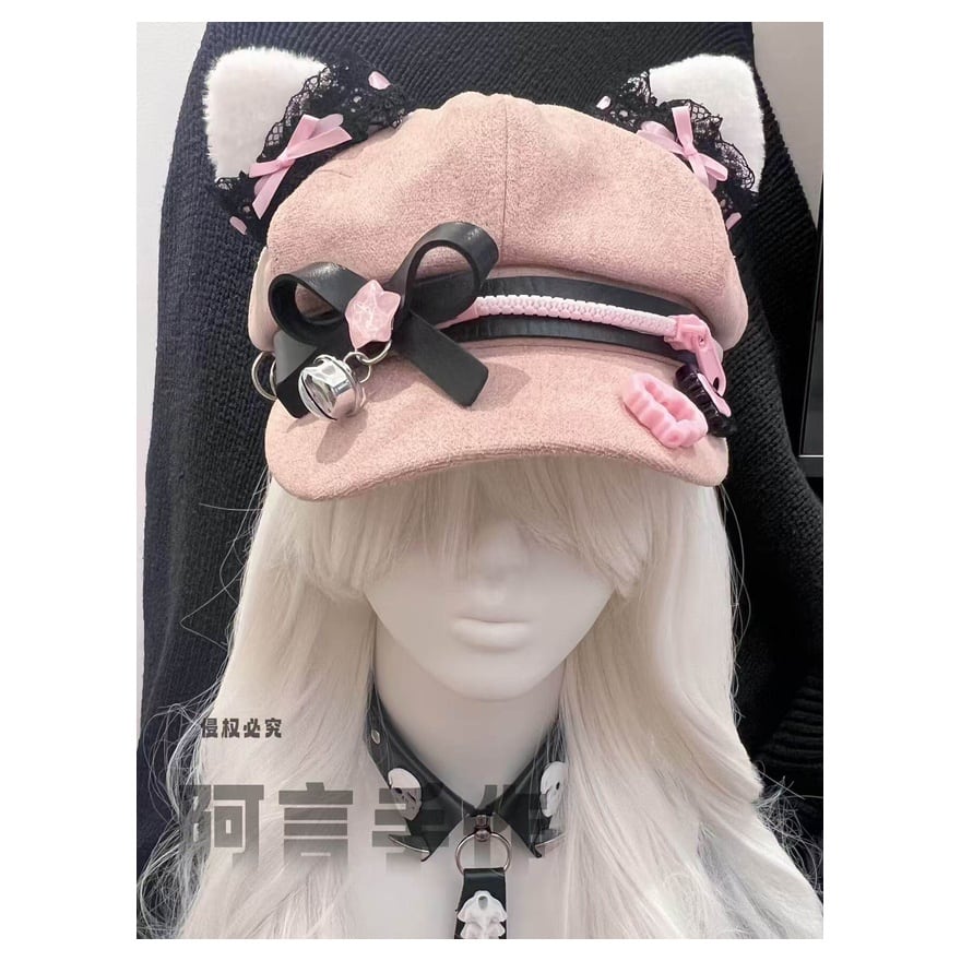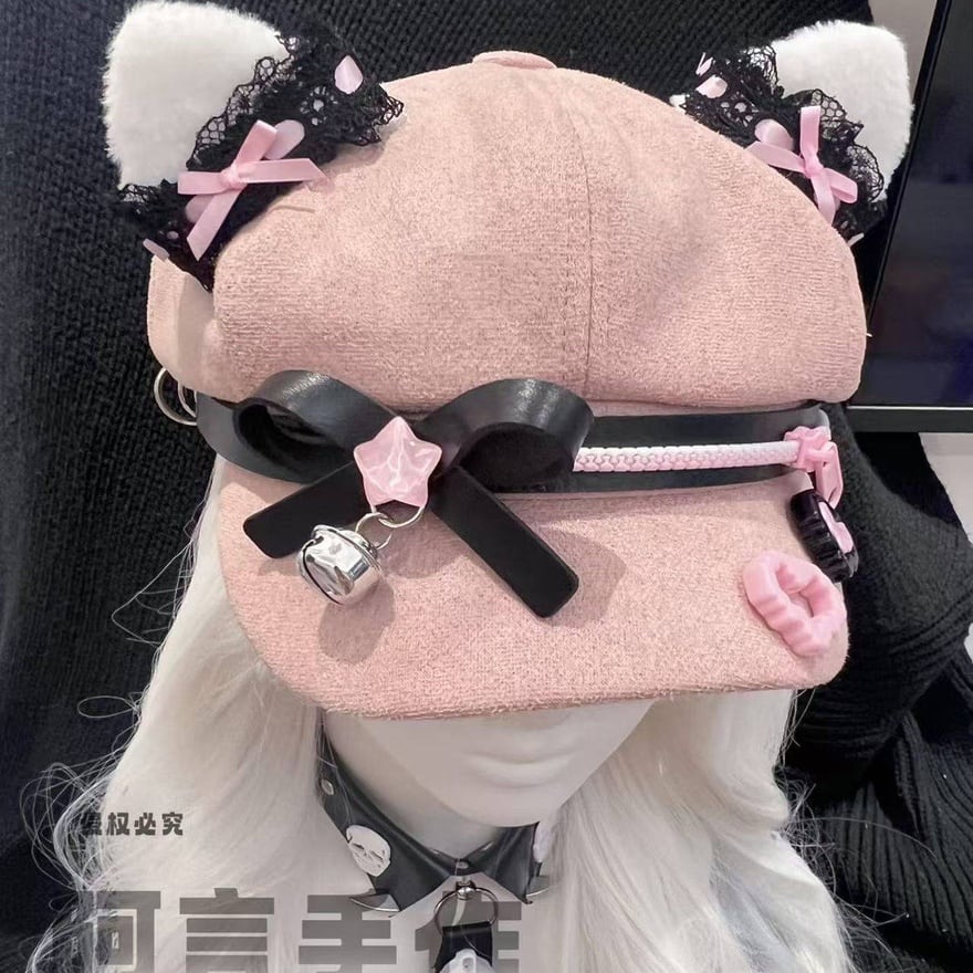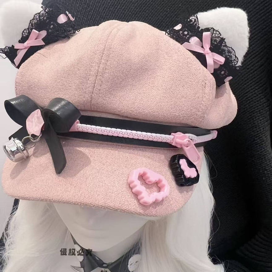 甘い色には、ときどき危うさを宿す余白があります。やさしいピンクの中へ黒を差し込み、猫耳や鈴の遊び心を重ねることで、このキャップはただの小物ではなく、コーデ全体の温度を変える主役になります。視線を逸らさせない可愛さを、少しだけ尖らせて楽しみたい日に似合う一品です。