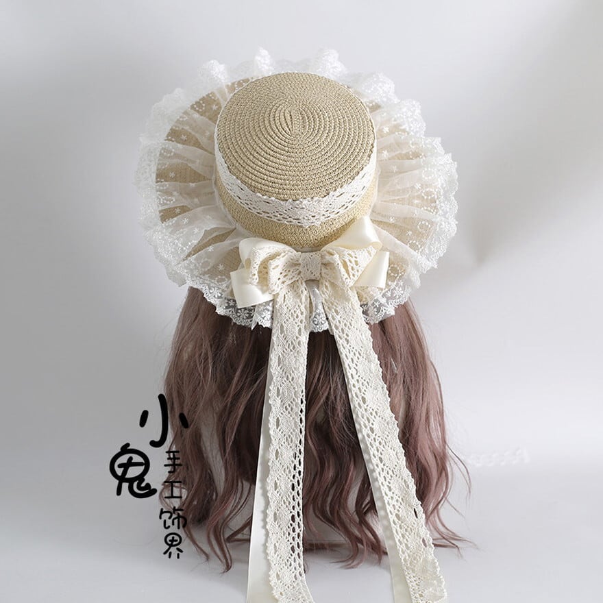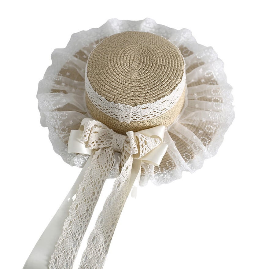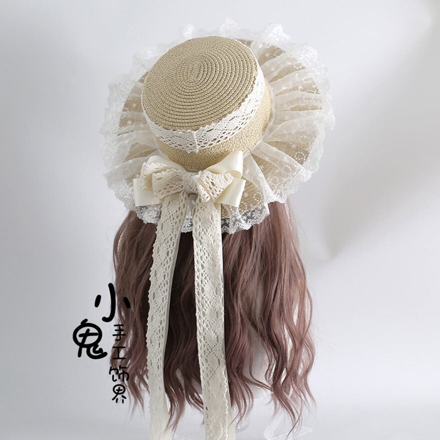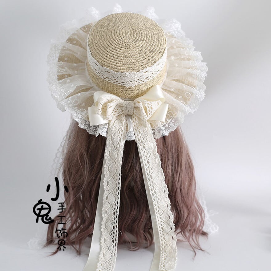 ロリータ クラロリ 麦わらカンカン帽 レースフリル リボン付き ストローハット 夏小物 58cm|SEASONZ