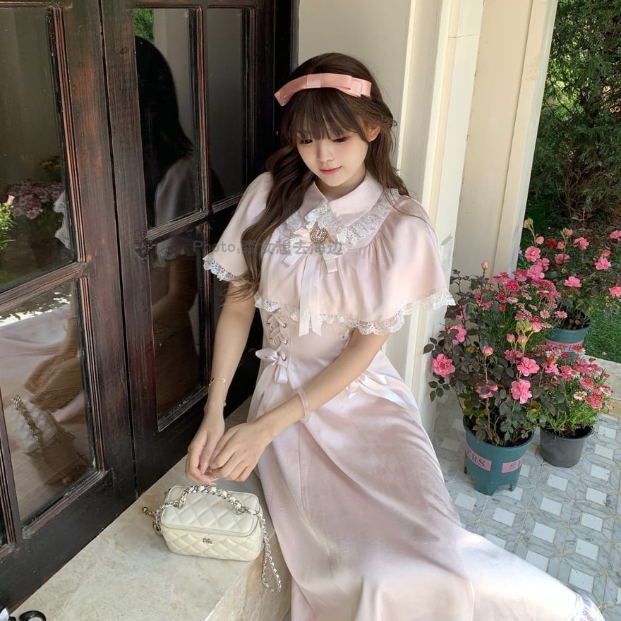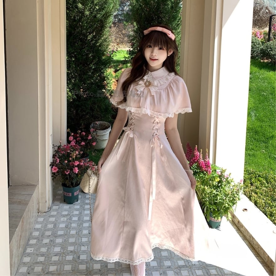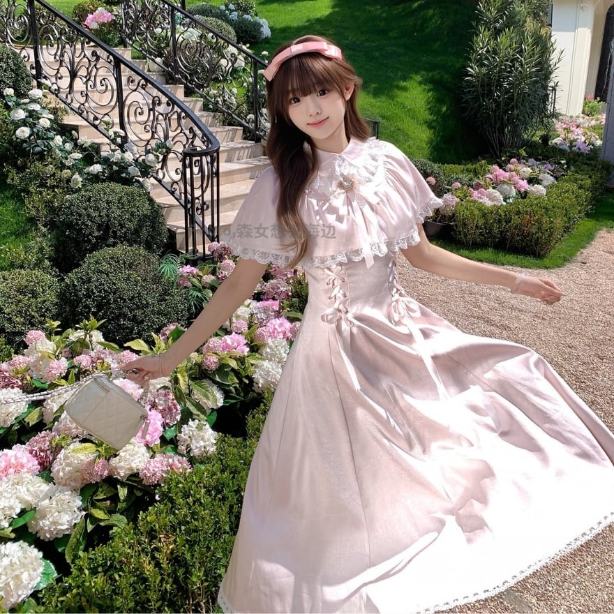 クラシカルロリータ|レースケープ風ロングワンピース(ピンク)お茶会・お出かけ向け|SEASONZ
