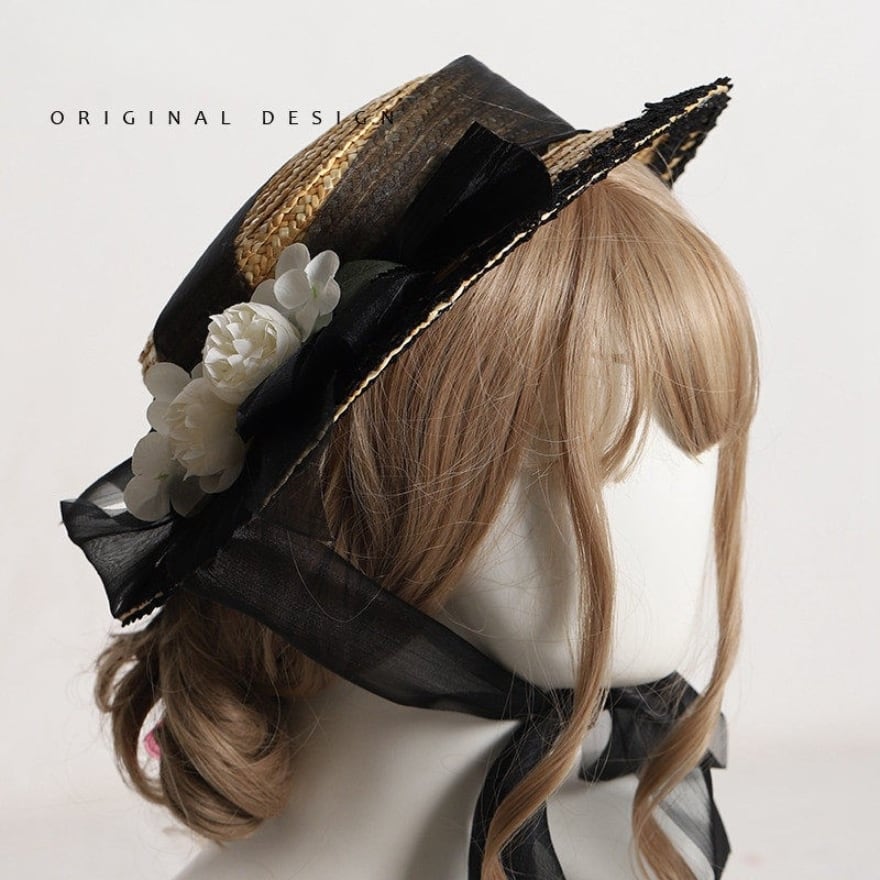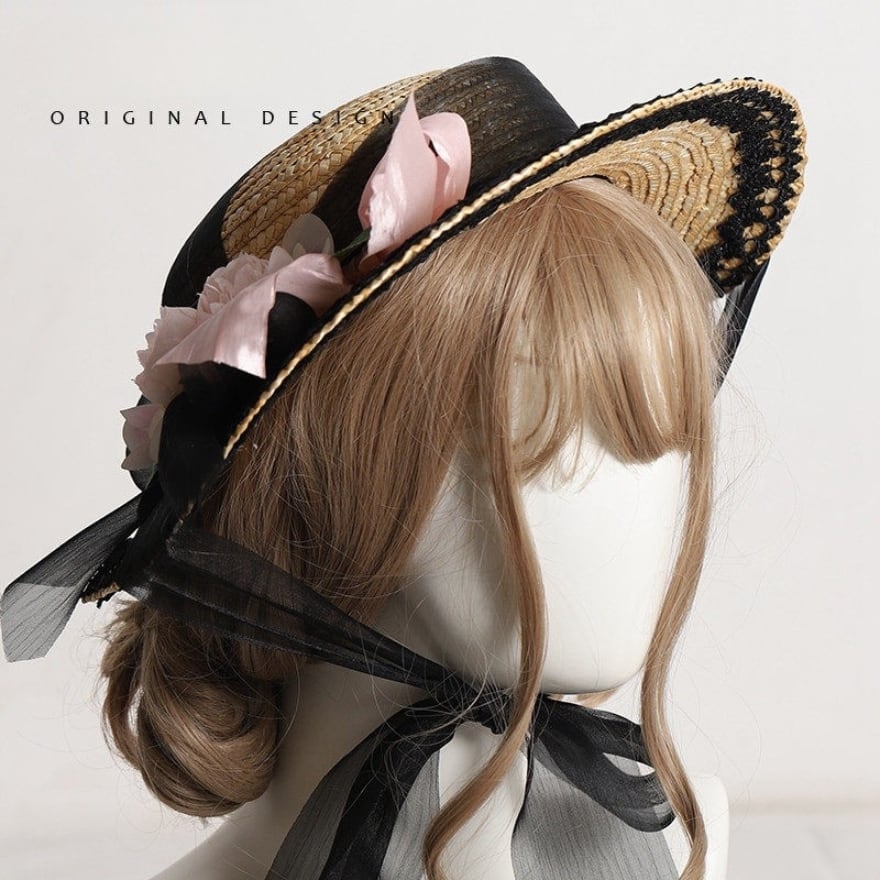 クラシカルロリータ|フラワーリボン麦わらハット(10カラー)夏のお出かけ・撮影会向け|SEASONZ