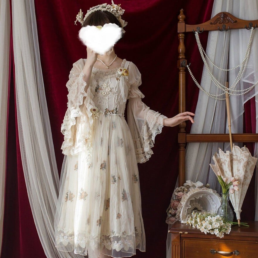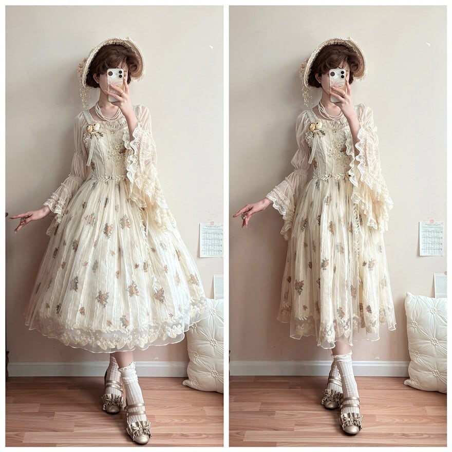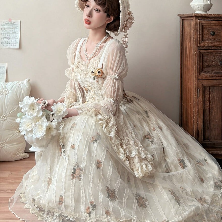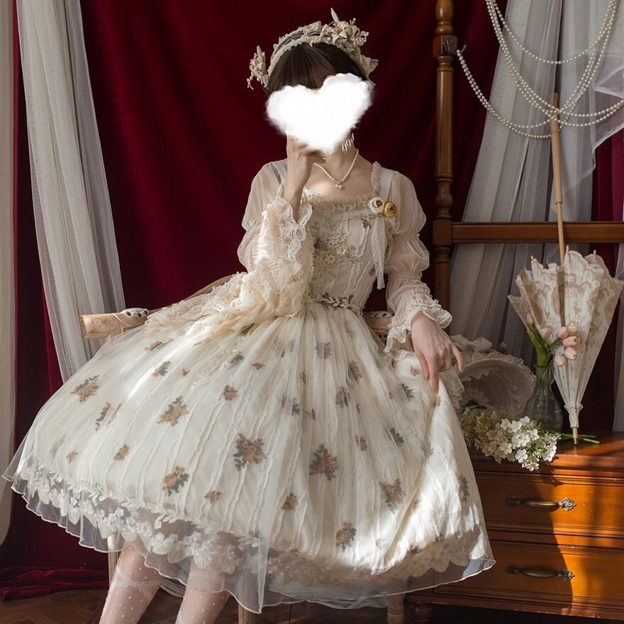 ・お茶会やロリータイベントに。柔らかな色合いと刺繍が上品な空気を演出します。