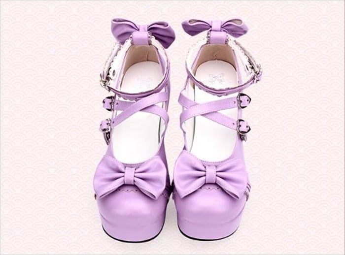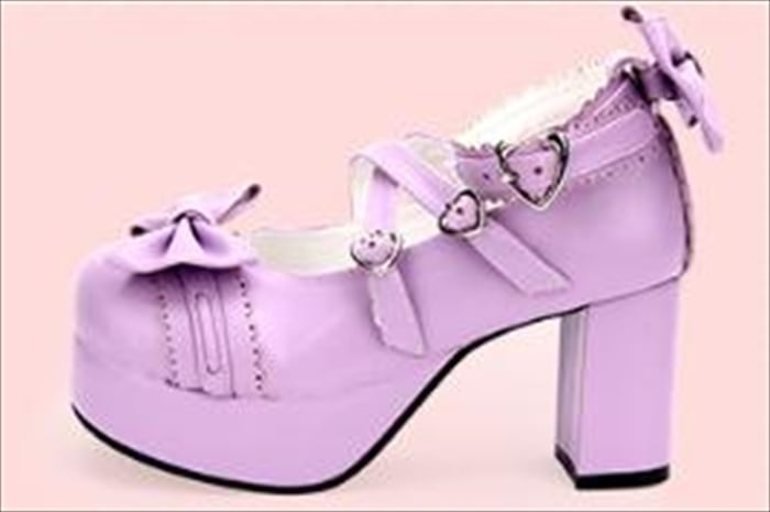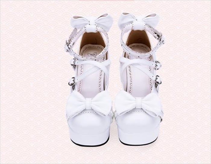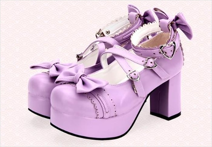 お嬢様ワンピースと相性ぴったりな姫系マフィンハイヒールです。トップとバッグのリボンにハートの留金具がおしゃれかわいい。