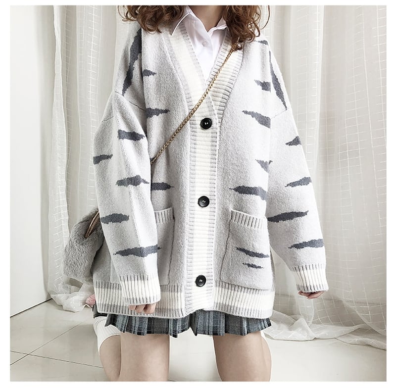 可愛い子猫をモチーフにしたニットカーディガンです。