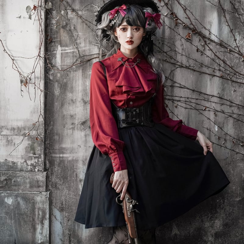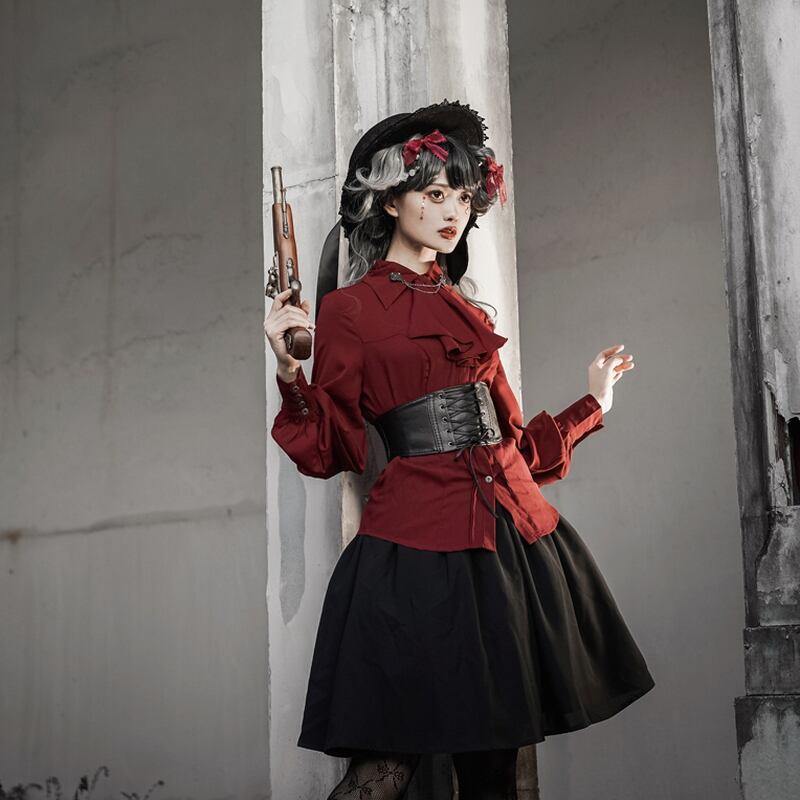 使い回し力抜群なウエストベルト付きゴシックスカートです。