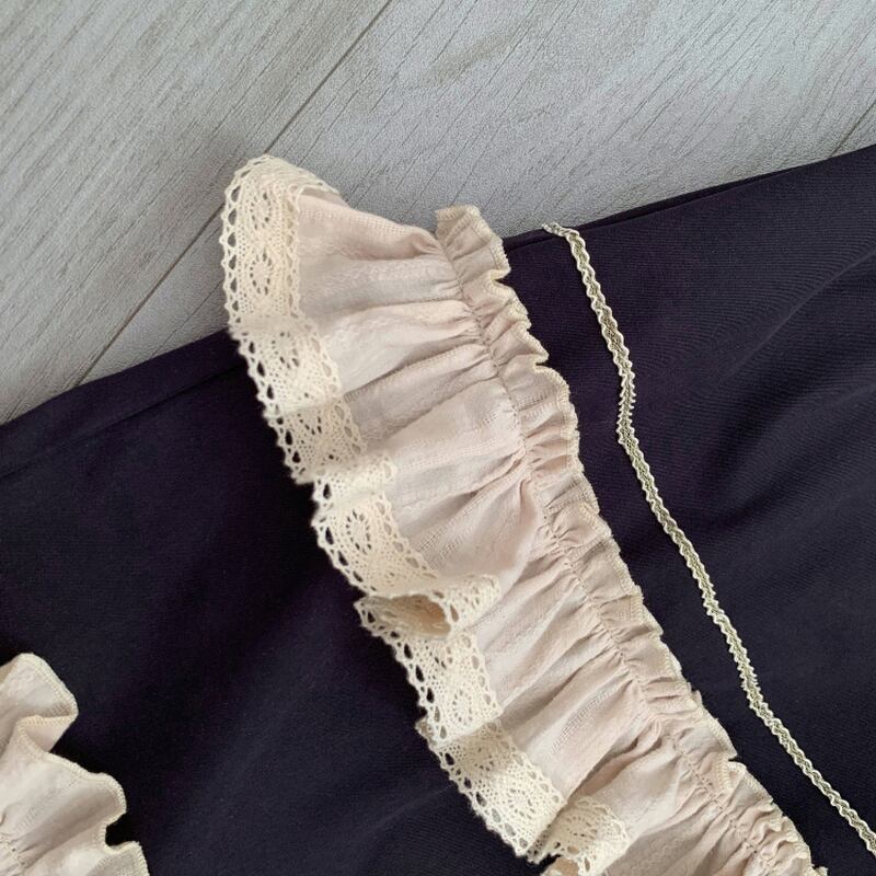 SEASONZ ロリータ クラロリ レトロ ゴシック ロリータ ワンピ ハイウエスト 膝丈 病み可愛い ネックギャザー フリル リボン 韓国ファッション ろりぃた服