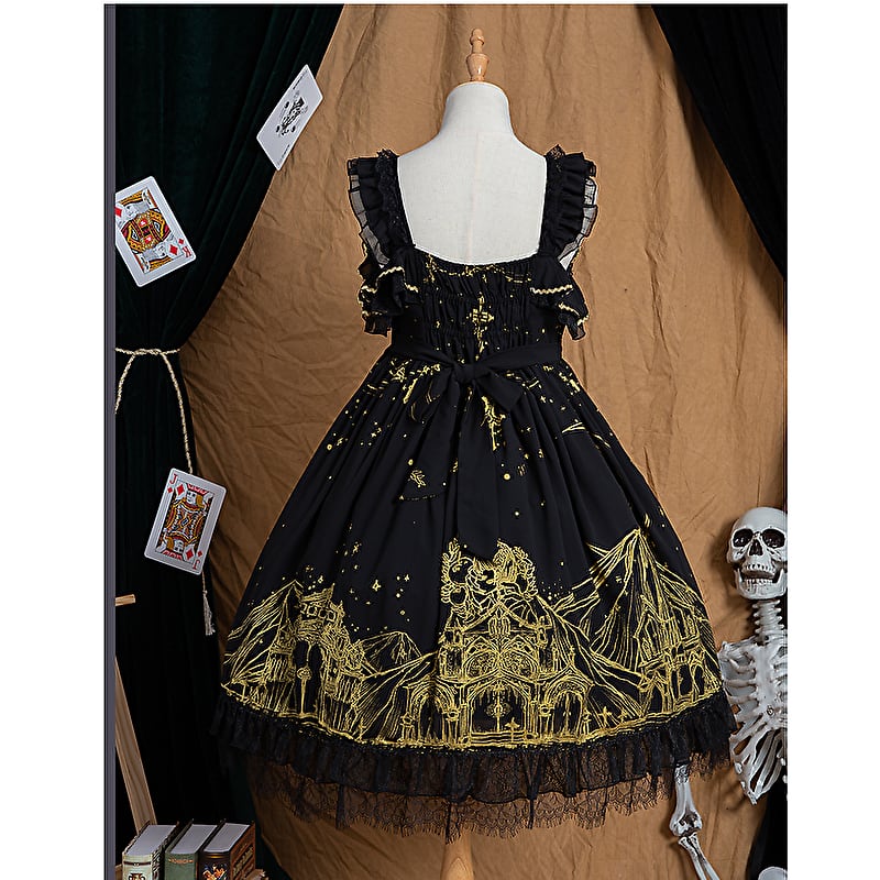 SEASONZ JSK ジャンパースカート ロリータ ワンピ サスペンダースカート教会 十字架 プリント レース フリル ふんわり 病み可愛い 原宿系 オルチャン ろりぃた服