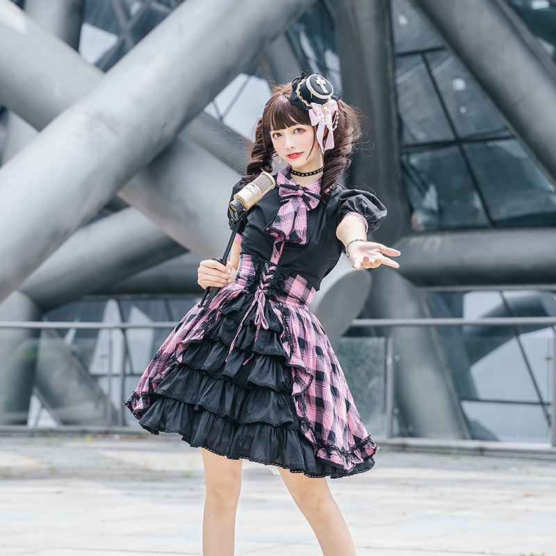 SEASONZ ワンピ ピンク チェック柄 編上げ リボン アイドル衣装 コスチューム ストリート系 原宿系 地雷系 オルチャン ゆめかわ