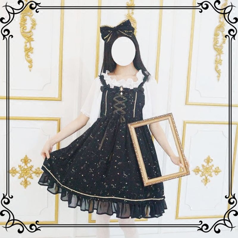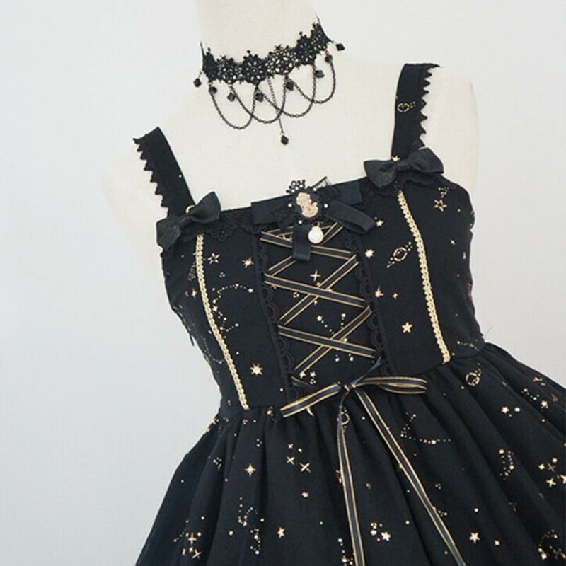 SEASONZ JSK ジャンパースカート ジャンパースカート ロリィタ ワンピ 星座柄 編上げレース 甘い 原宿系 量産型 オルチャン ゆめかわ
