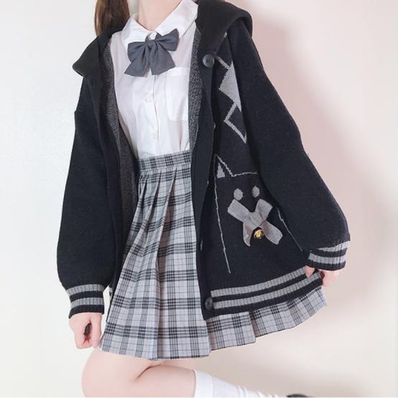 SEASONZ ゴスロリ系 Catwish 秋冬 カーディガン パーカー フード付き ネコちゃん リボン厚手 JK 学園服 可愛い 量産型 原宿 病み系 ゆめかわ