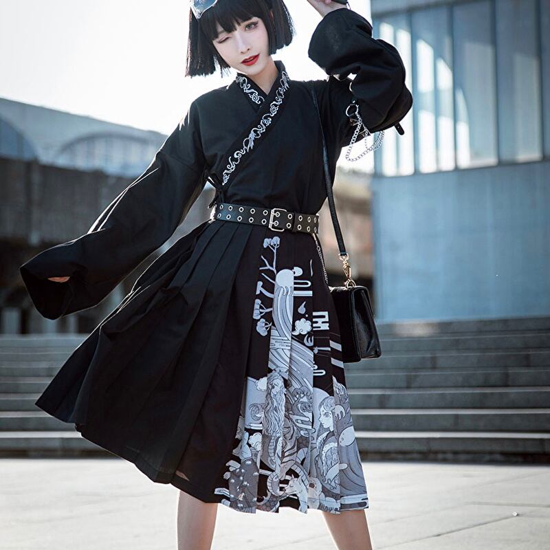 SEASONZ 長袖 シャツ 中華風 漢服 襟 刺繍 トランペットスリーブ 病み可愛い ゴシック レトロ 地雷系