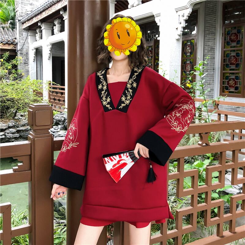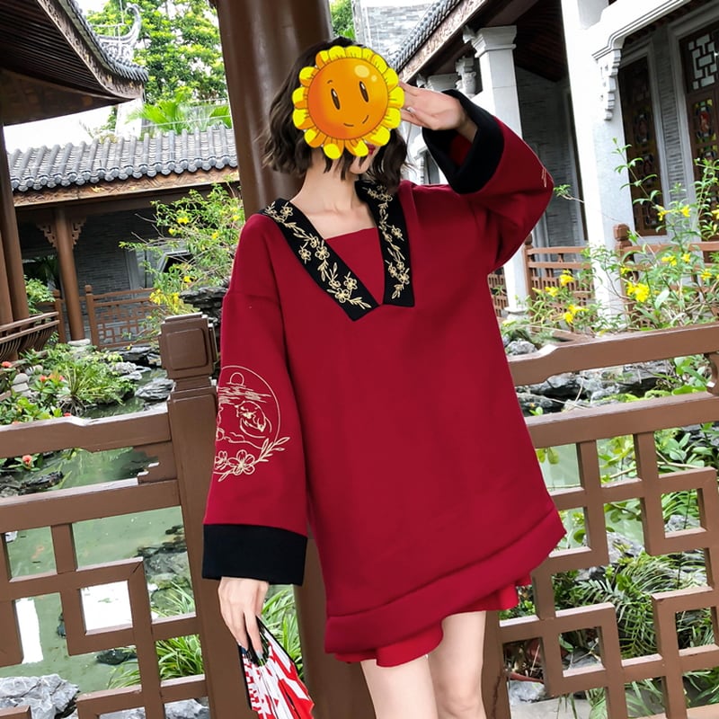 SEASONZ トレーナー ロング丈 プルオーバー 刺繍 チャイニーズ ゴシック サブカル系 地雷系 ストリート系 ろりぃた服