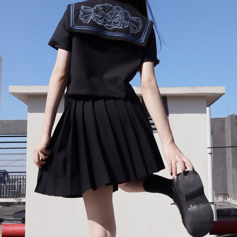 SEASONZ JK 制服 プリーツ ミニスカ 刺繍 ハードガール 暗黒系 地雷系バンギャ ゴスロリ