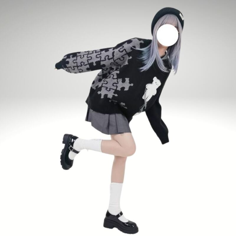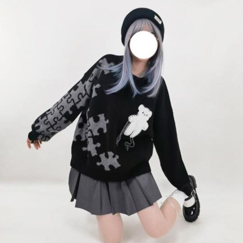 SEASONZ Catwish 春 セーター ジグソーパズル柄 くまちゃん 甘め かわいい JK 原宿系 病み可愛い ゴスロリ