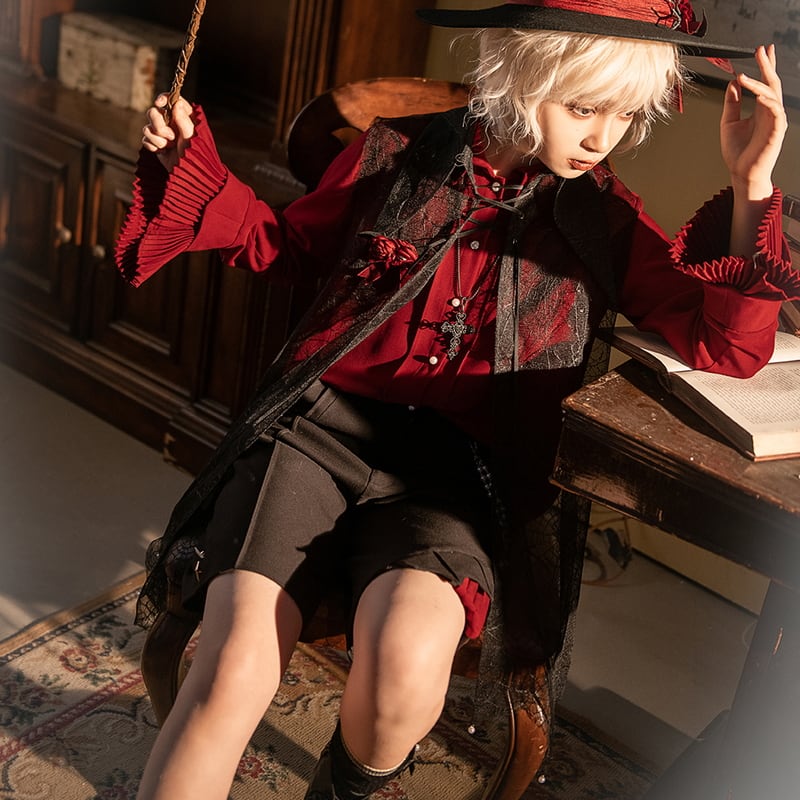 SEASONZ 王子 皇子系 Princess Chronicles ハーフパンツ ワンポイント 差し色 レッド グリーン 麗人風 リトルプリンセス 病み可愛い レトロ コンカフェ 舞台衣装 ゴシック ゆめかわ