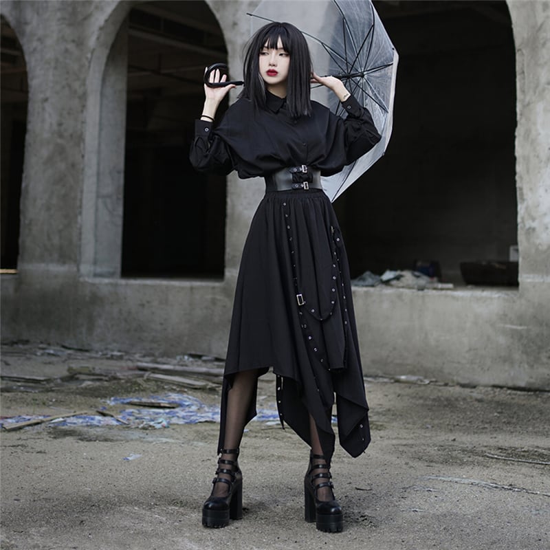 SEASONZ 長袖シャツ ウエストベルト付き 大人ゴシック 病み可愛い ストリート系 地雷系 バンギャ ゆめかわ