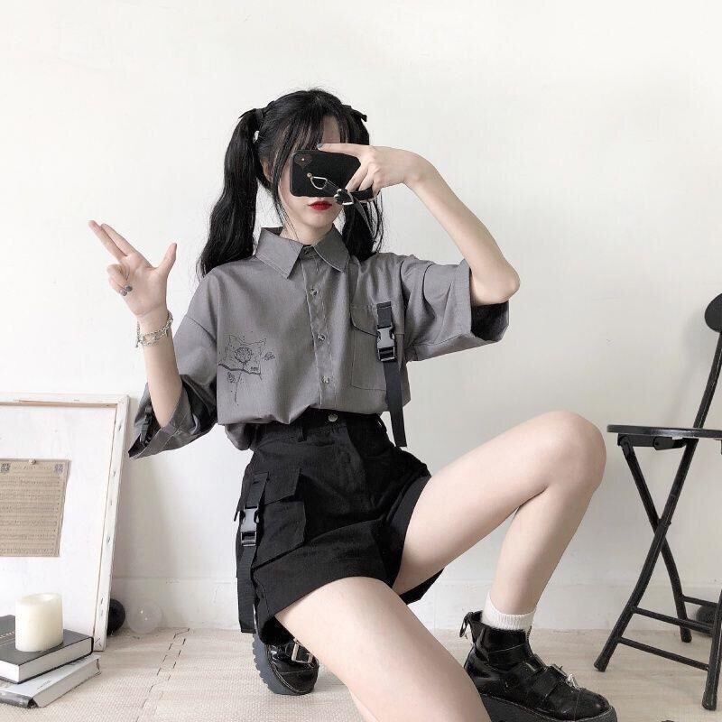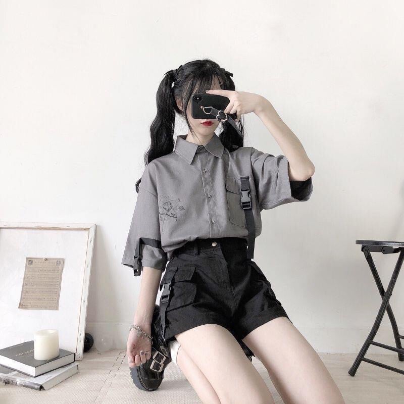 SEASONZ ゴスロリ系 ツーピース シャツ 異形ストラップ ハーフパンツ 台形パンツ 上下セット 病み可愛い JKスタイル ロリィタ 甘め ストリート系 原宿系 10代 20 代 ゆめかわ