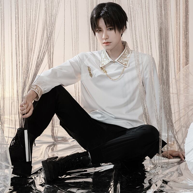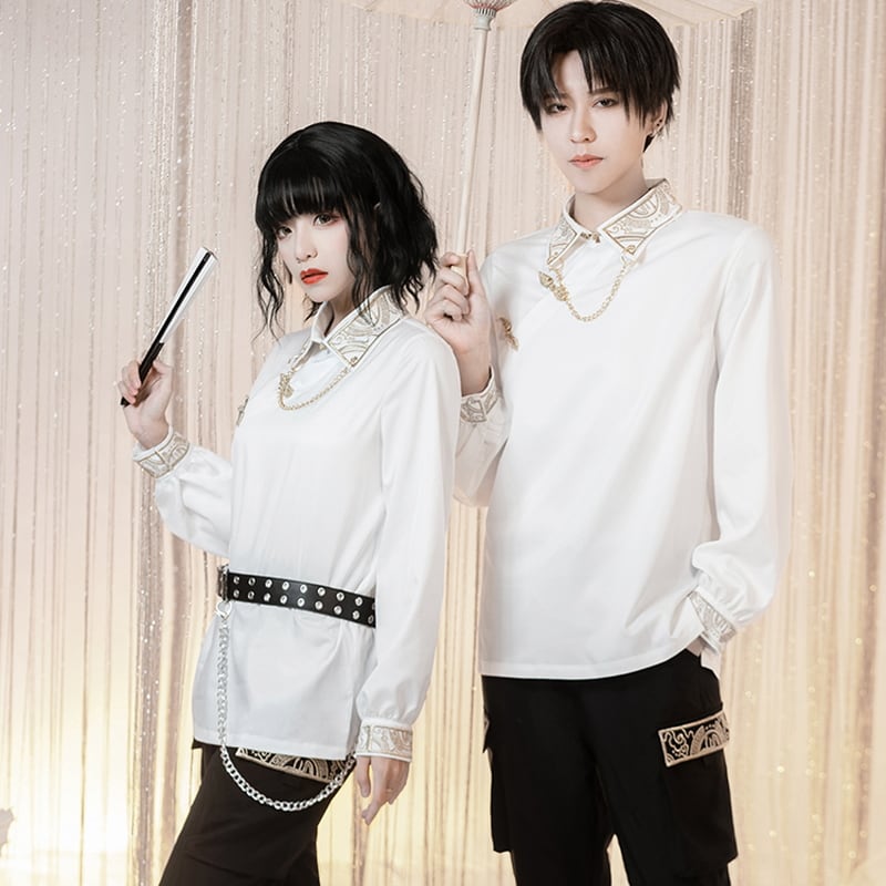 高見えする金糸刺繍がビジュアル抜群なユニセックス白シャツ