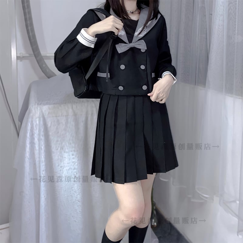 レトロなグレーにちょっぴりワイルドなカラスデザインが病み可愛いのセーラー服上下セット