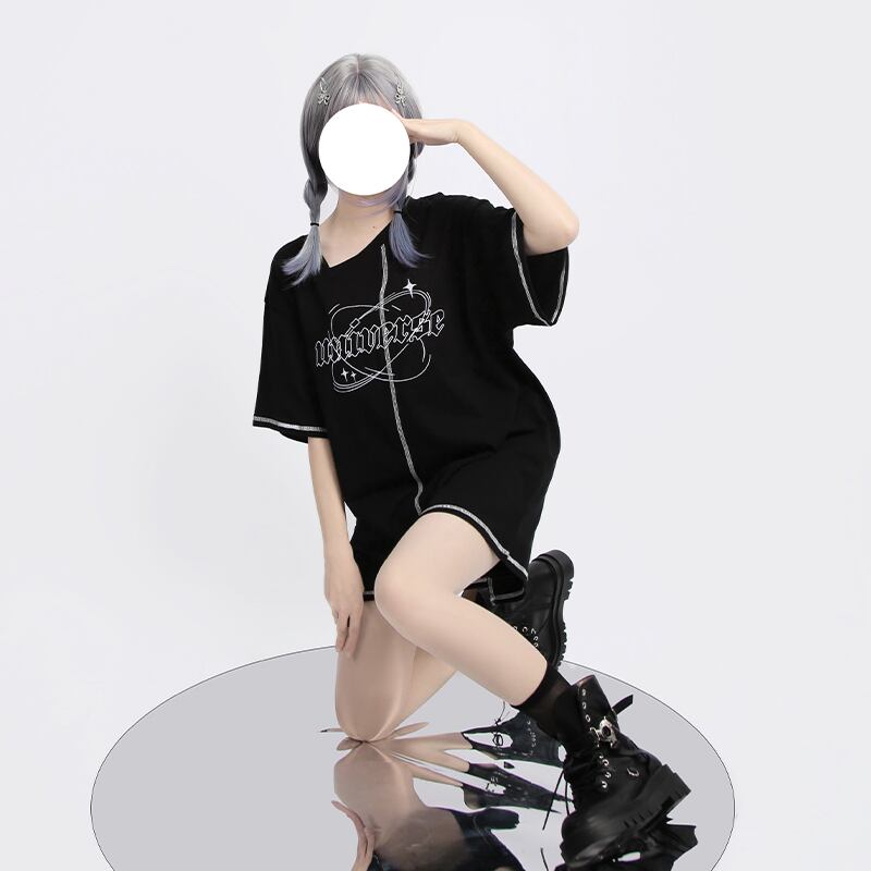 SEASONZ Catwish 半袖 Tシャツ 異形ネック 英字ロゴ 刺繍 Sweet Cool かわいい JK ストリート系 ろりぃた服