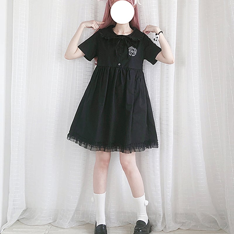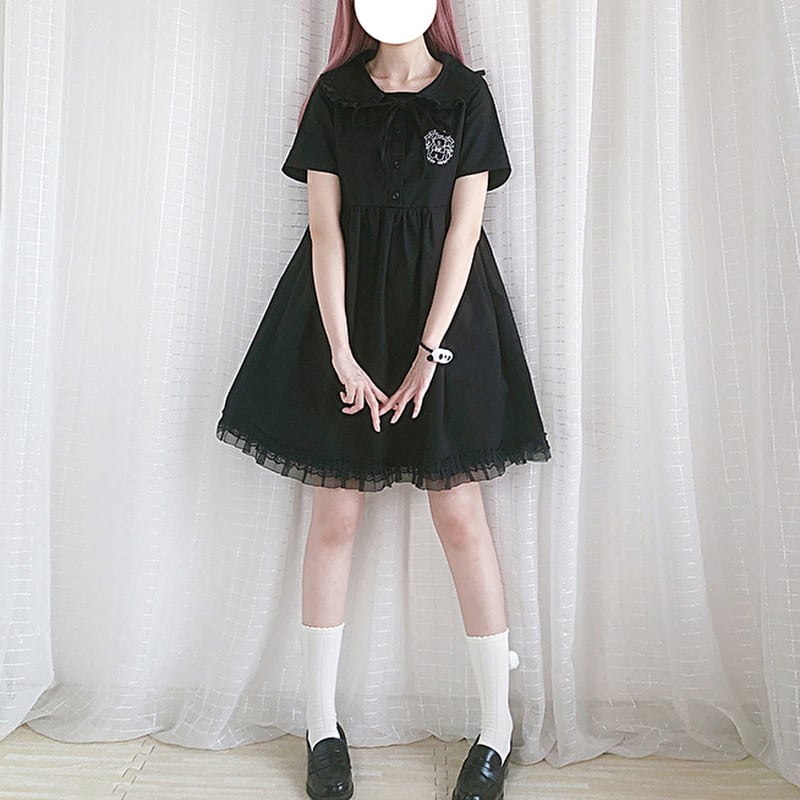 甘めなリボンとフリルが可愛いJKスタイルのミニ丈ワンピです