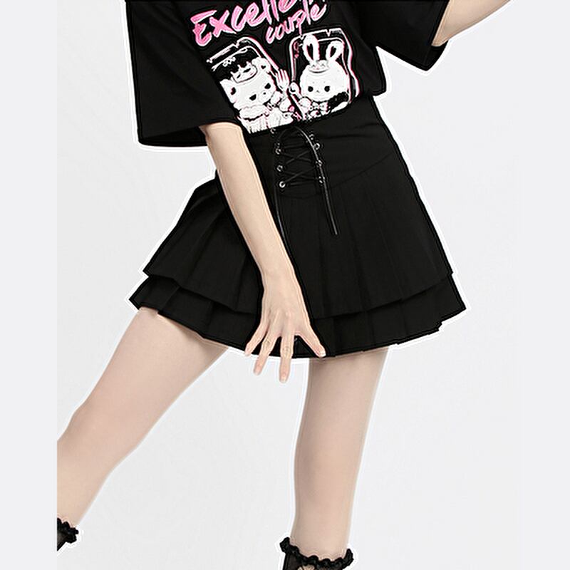切替えプリーツに編み上げクロスが可愛いCatwishオリジナルミニスカートです