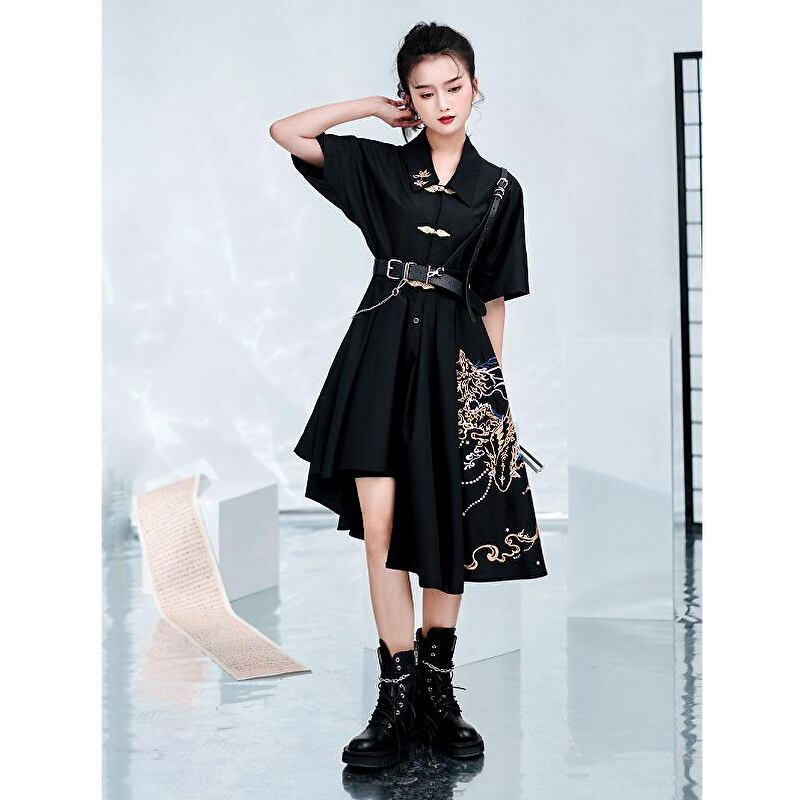 レトロなドラゴン刺繍が高見えなChineseGothicワンピ