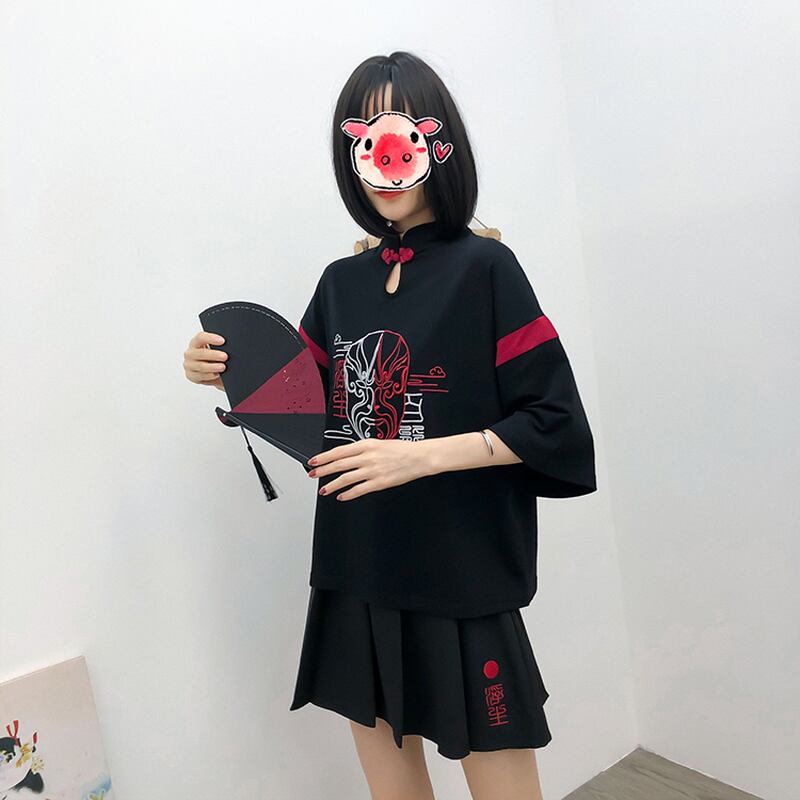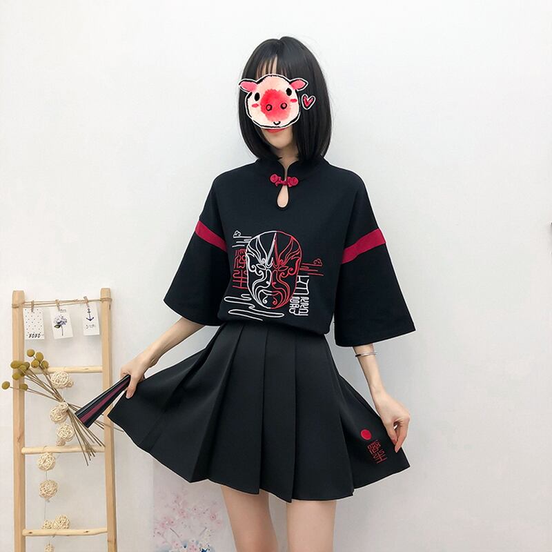 SEASONZ Tシャツ ChineseGothic レトロ トランペットスリーブ 病み可愛い ゴシック ストリート系 原宿系 サブカル好き ゆめかわ