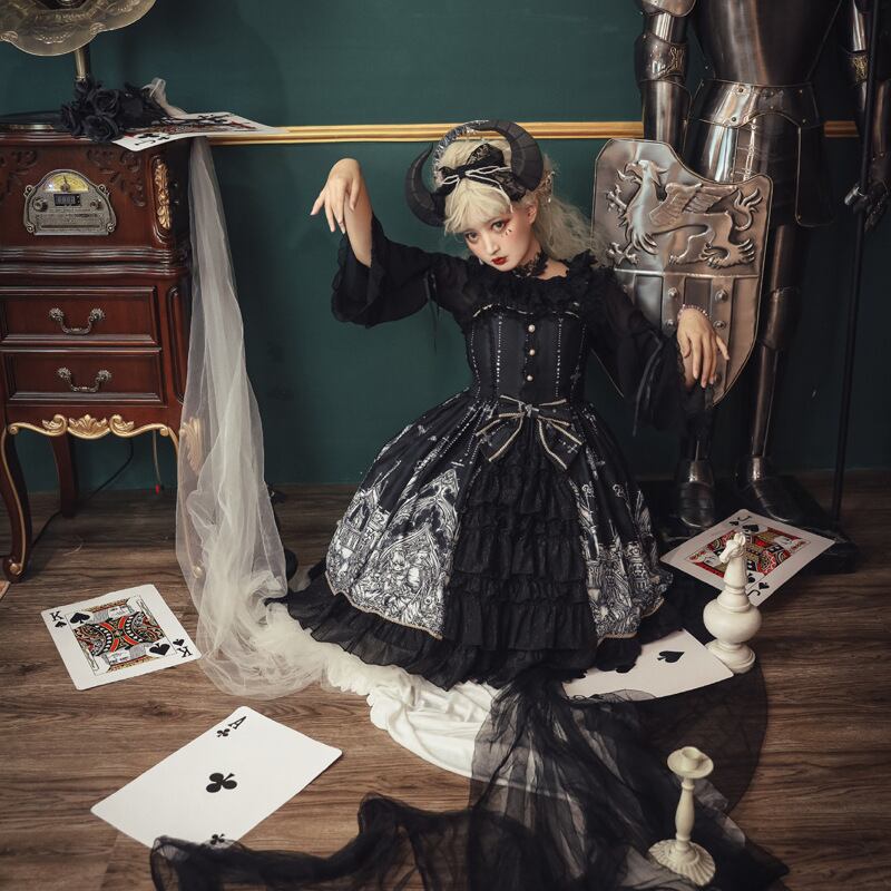 レトロな病み可愛いブラックと甘めなホワイトのJSK ジャンパースカートです