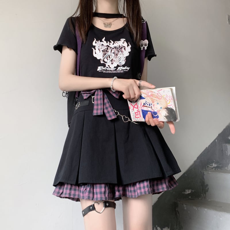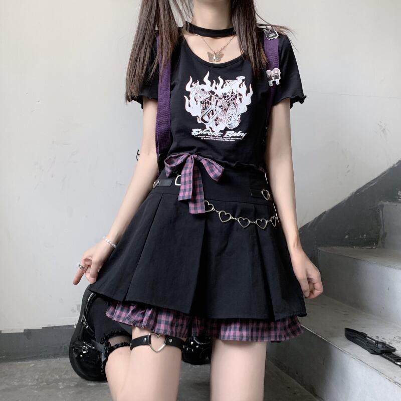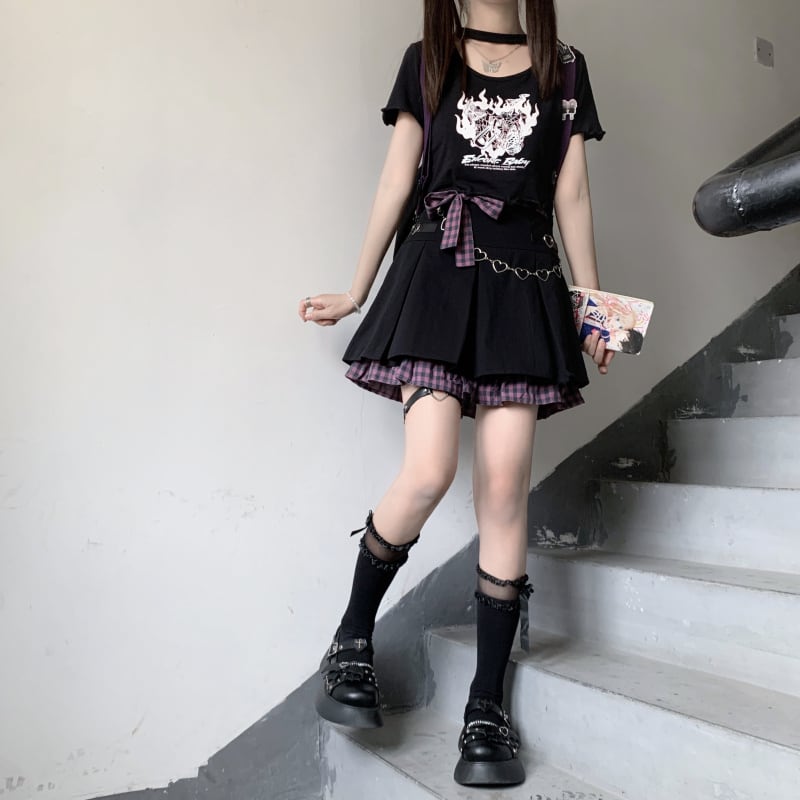 SEASONZ ミニスカ チェック柄 プリーツ リボン ハートリング JK ロリィタ 病み可愛い ストリート系 ろりぃた服